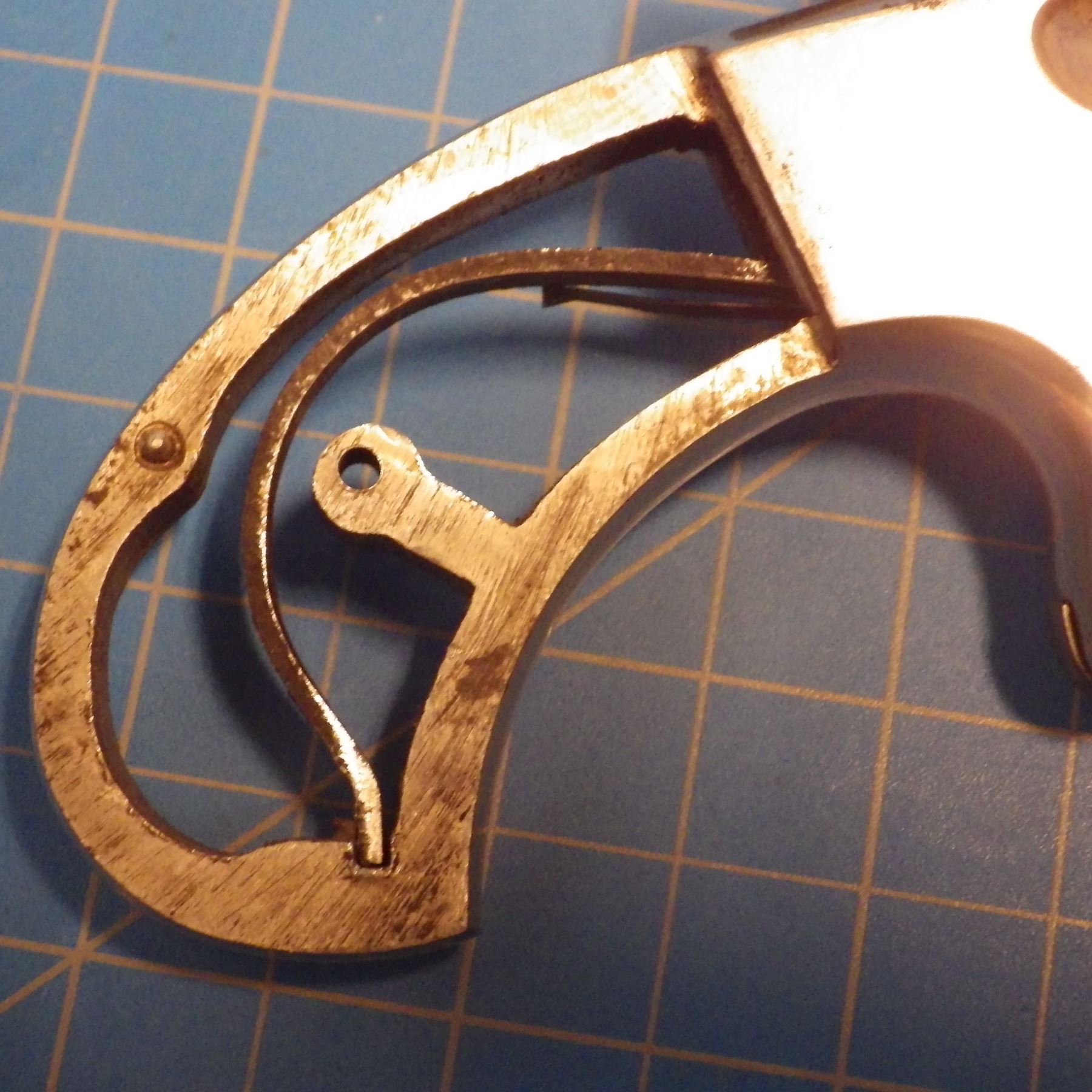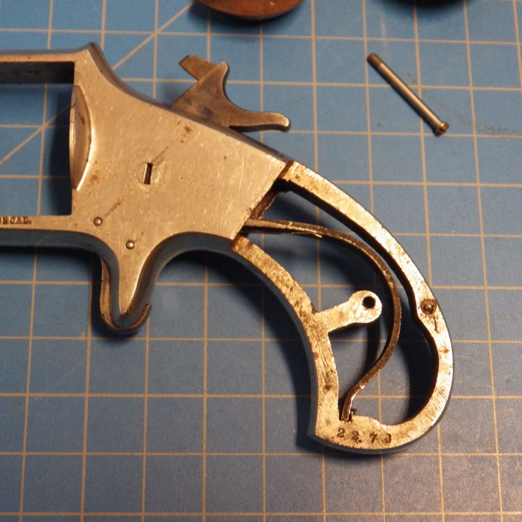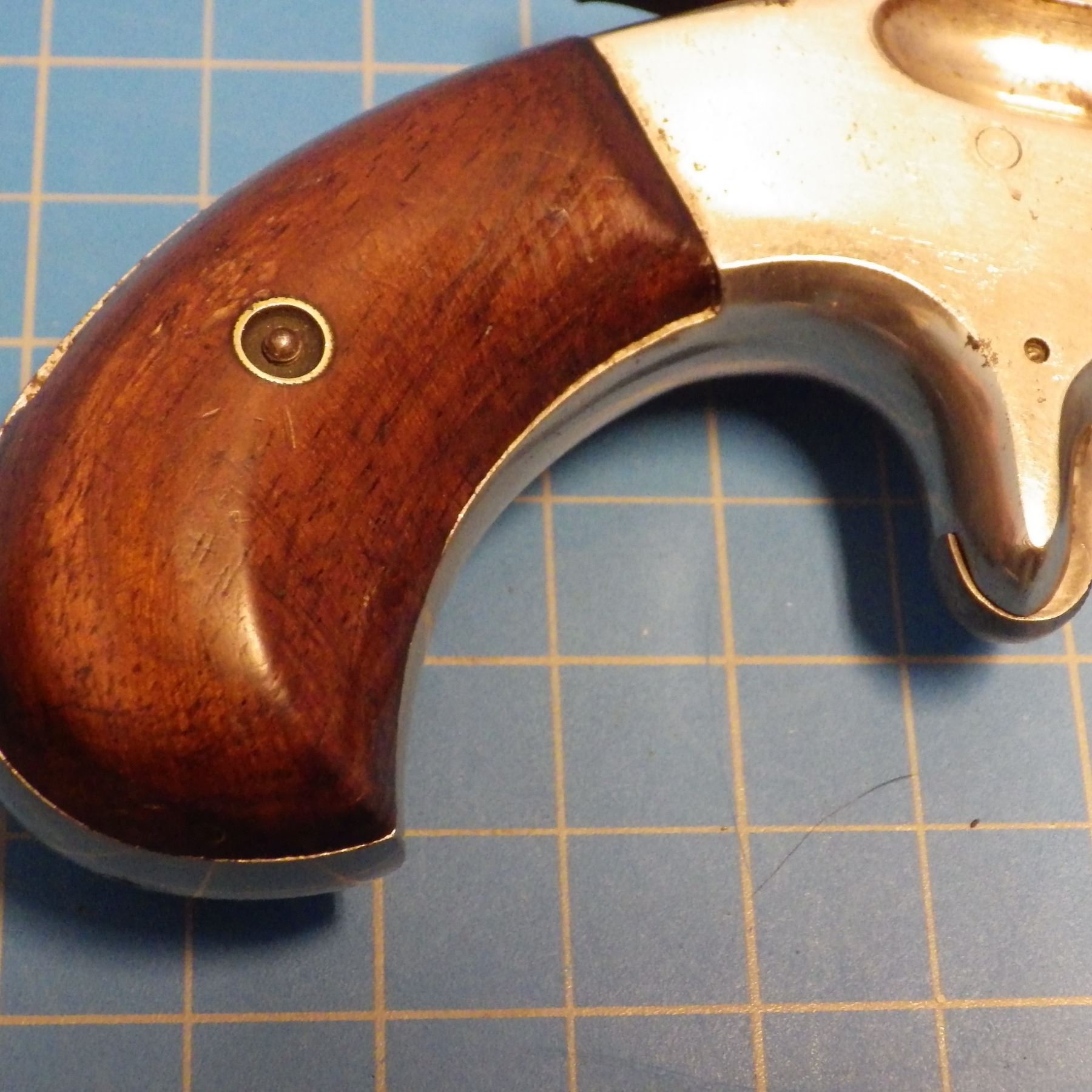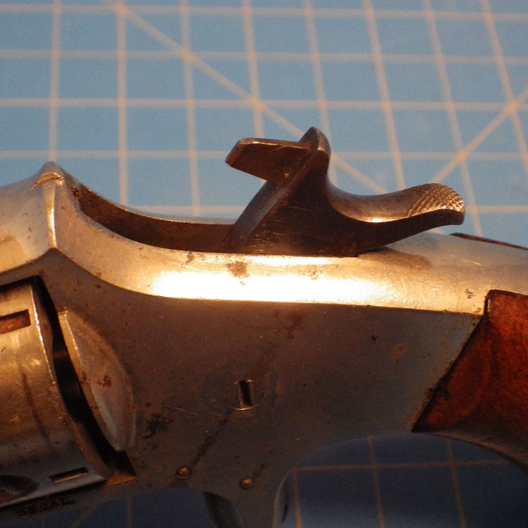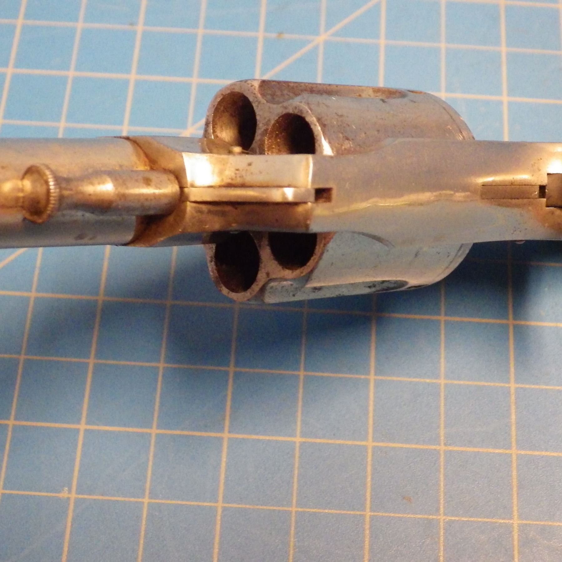 - characteristics: solid flat sided frame with fluted fixed cylinder, round barrel, steel blade front sight, rear sight is a notch in the top strap, sheathed trigger, exposed spur hammer, birdshead grip, plain walnut, pearl or ivory grips, hammer and trigger colour case hardened, nickel plate finish, may be engraved.