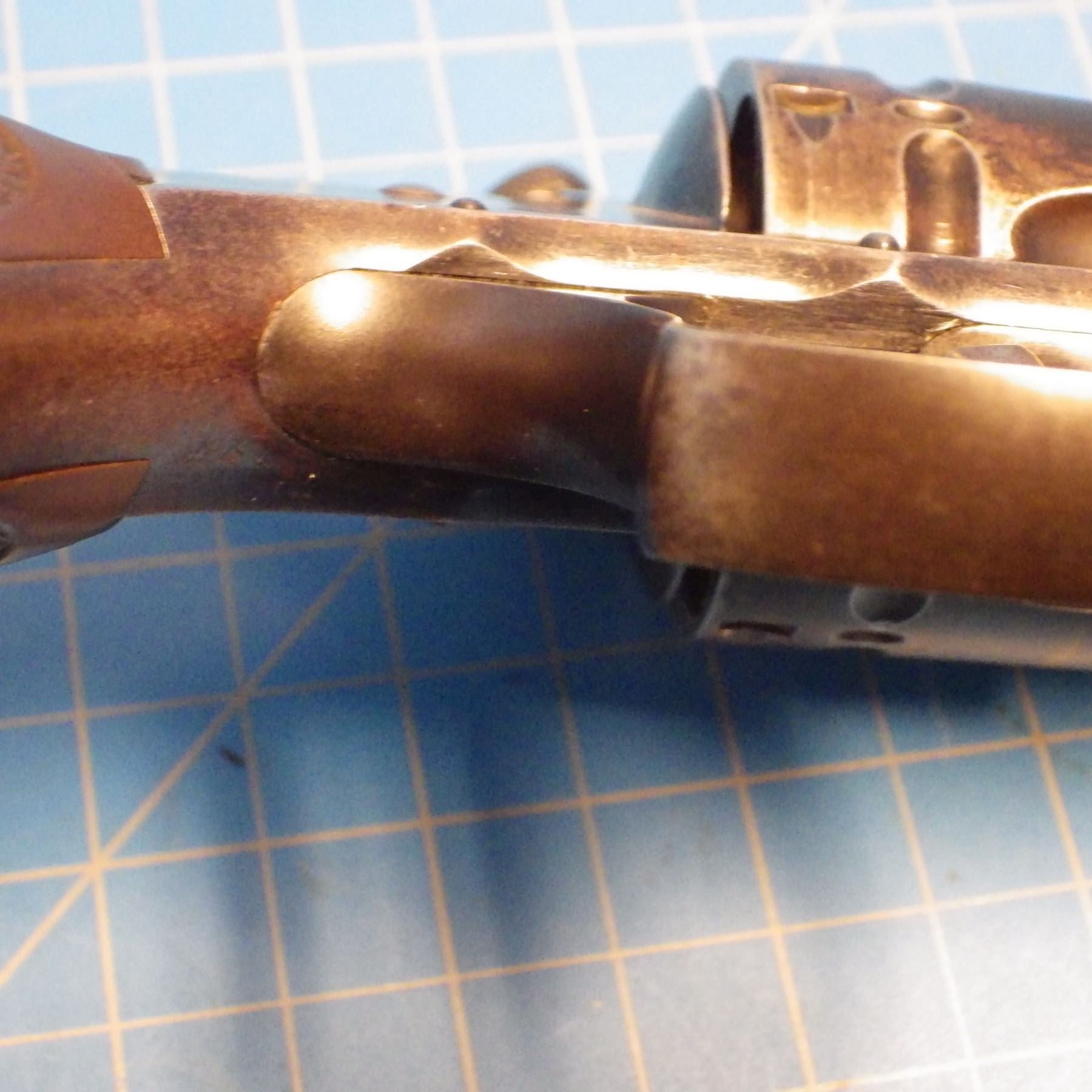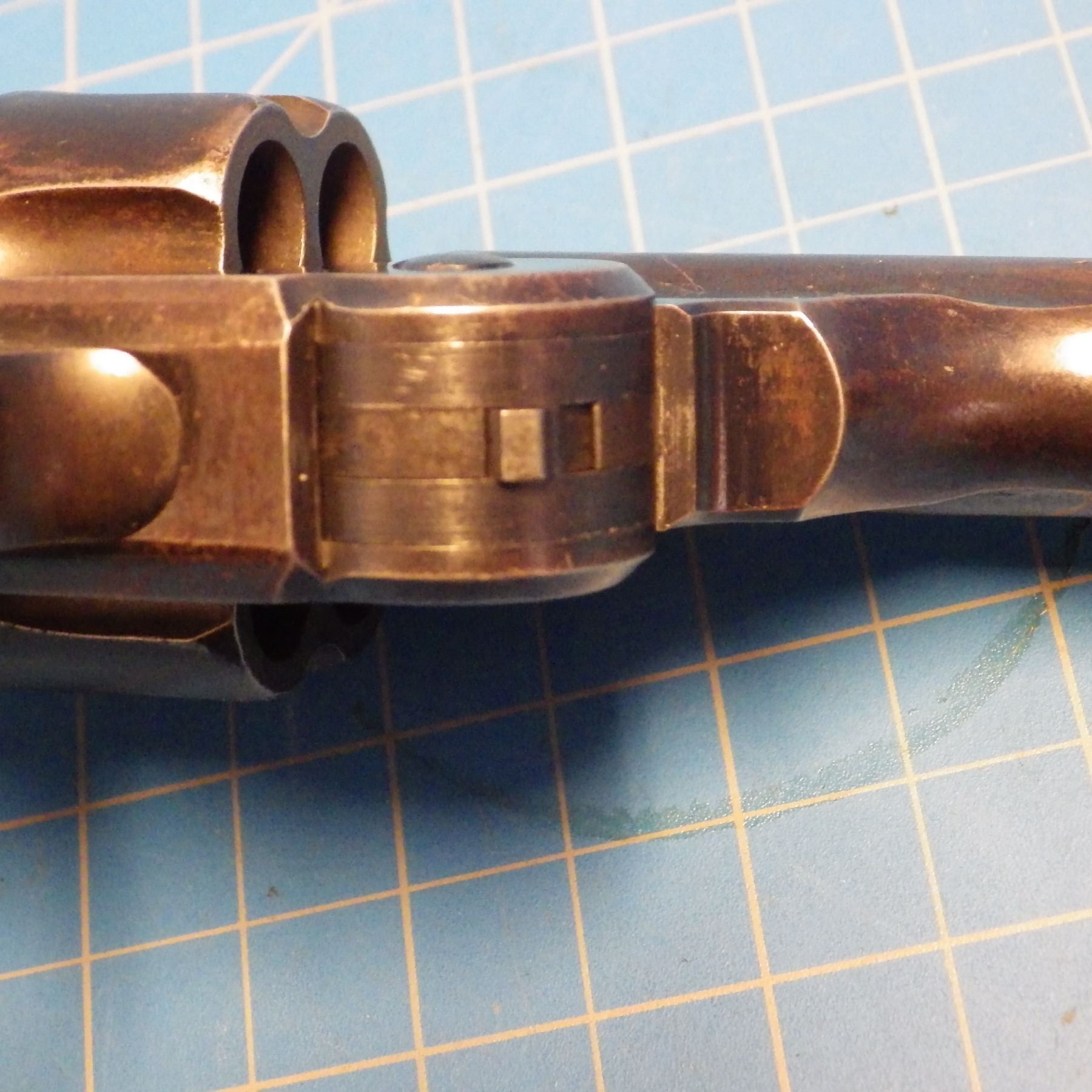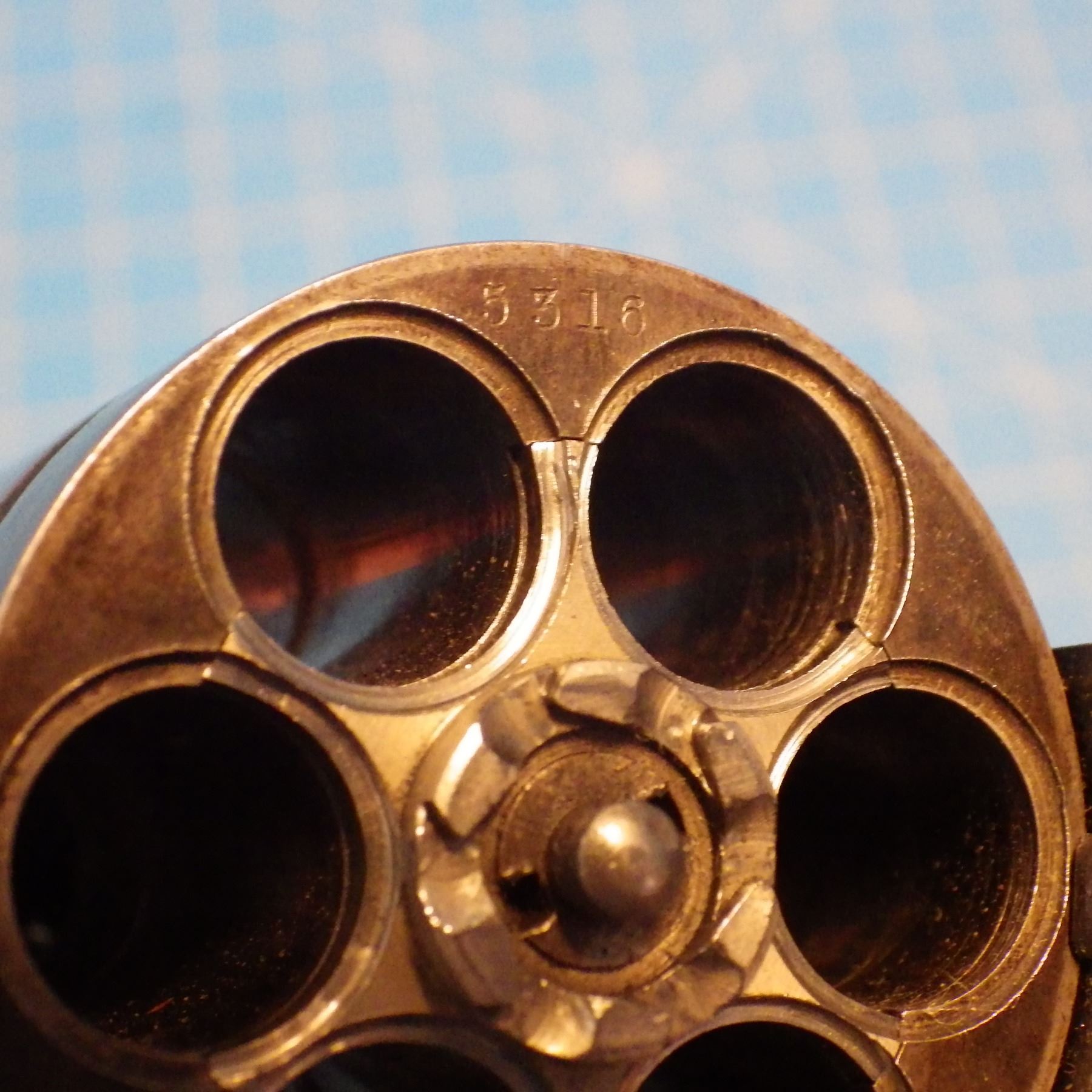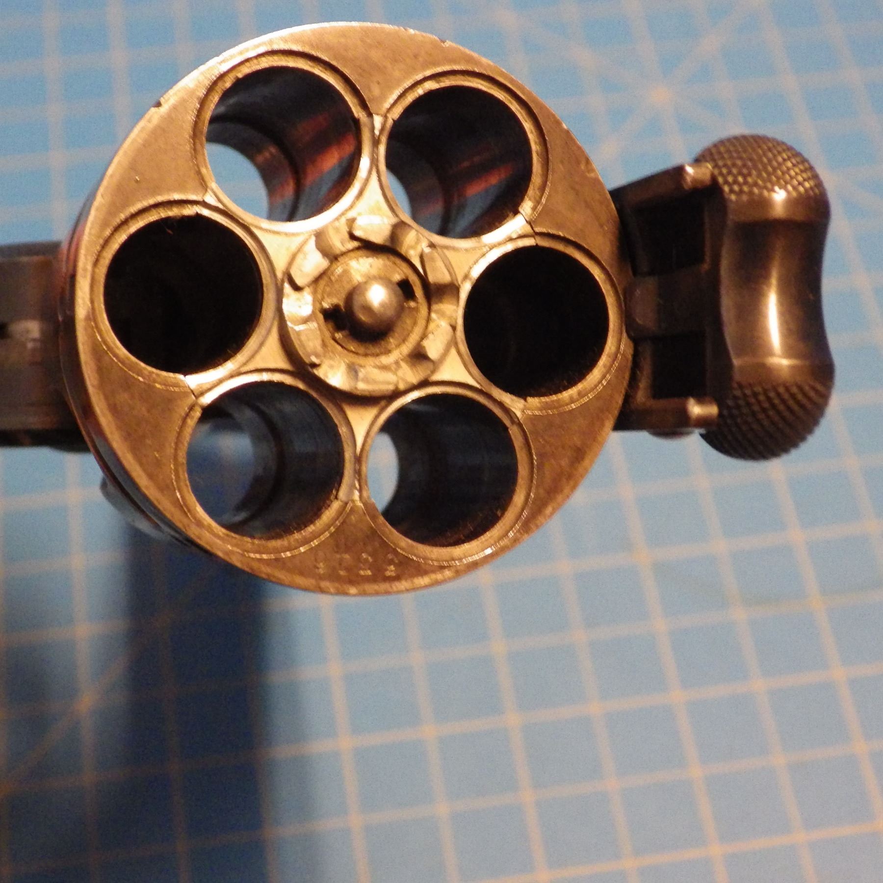 ANTIQUE PISTOL: SMITH & WESSON , .44 DOUBLE ACTION FIRST MODEL , 6 SHOT REVOLVER , .44 S&W RUSSIAN CARTRIDGE , BARREL LENGTH 127 mm , SERIAL # 5332 ... comes with letter from the OFFICE OF SMITH & WESSON REVOLVER MANUFACTURERS, DATED AUGUST 5, 2005. Left grip has minor crack ... see pictures.