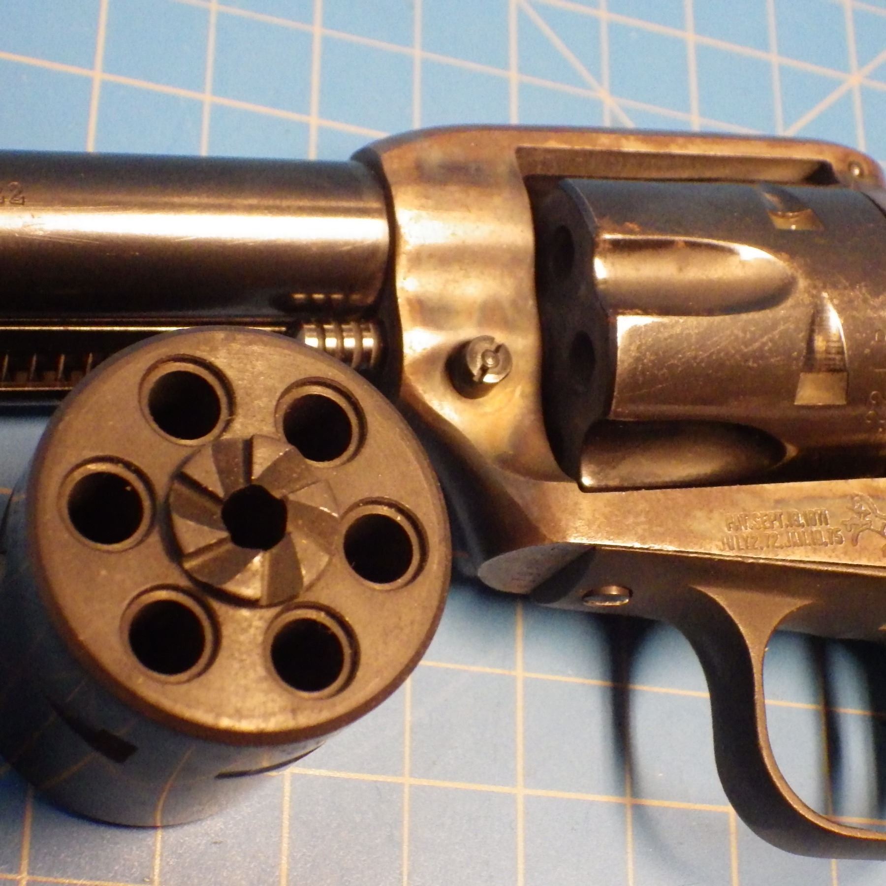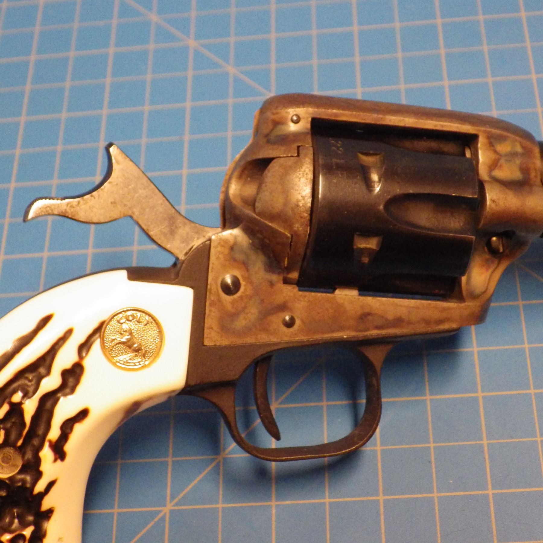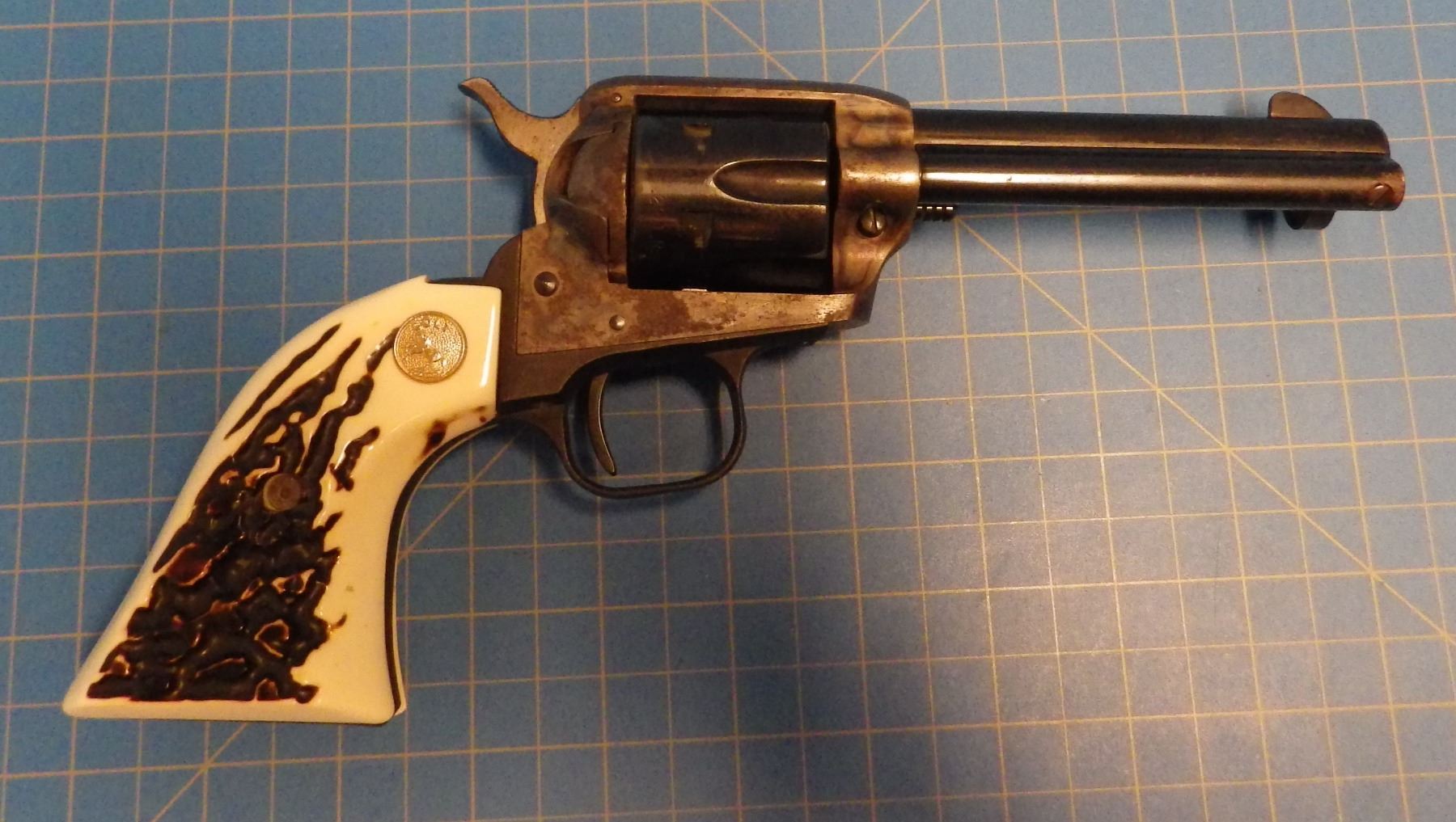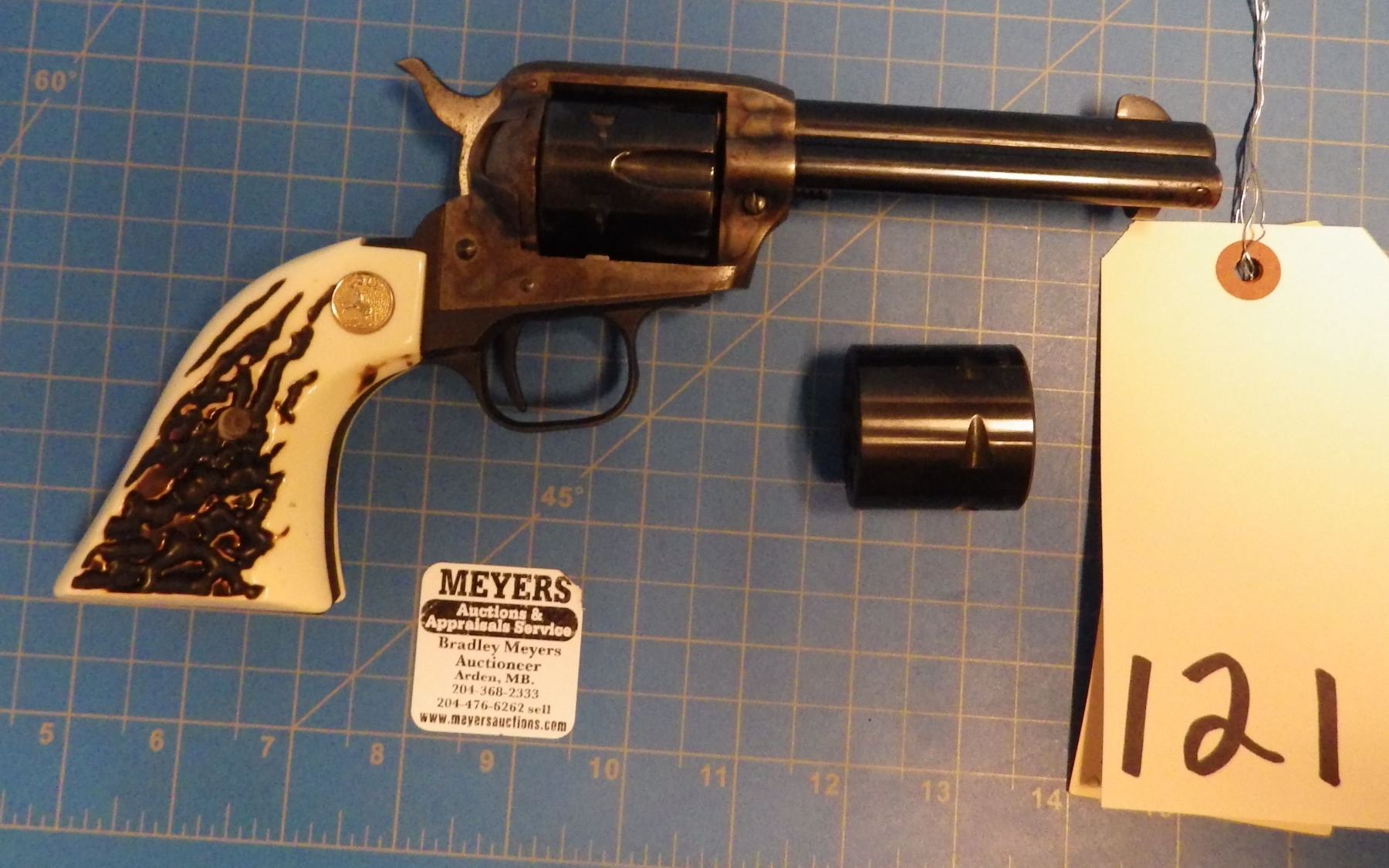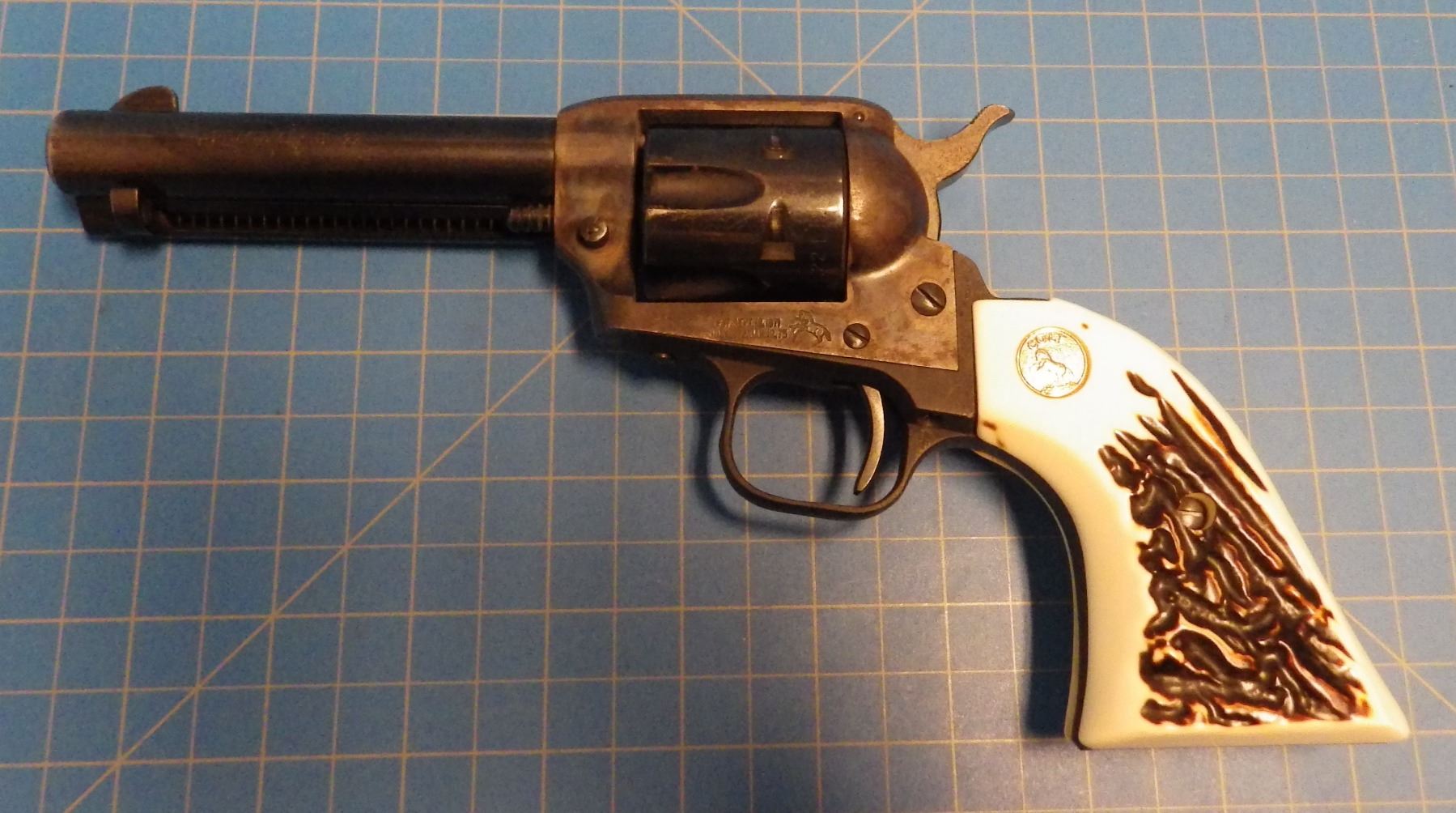 RESTRICTED PISTOL: COLT , PEACEMAKER , 6 SHOT REVOLVER , SINGLE ACTION , comes with 2 INTERCHANGEABLE CYLINDERS ( .22 lr CYLINDER & .22 mag CYLINDER ) , BARREL LENGTH 112 mm , SERIAL # G198367 *** SOME RUST & PITTING ON FRAME - CHECK PICTURES ***