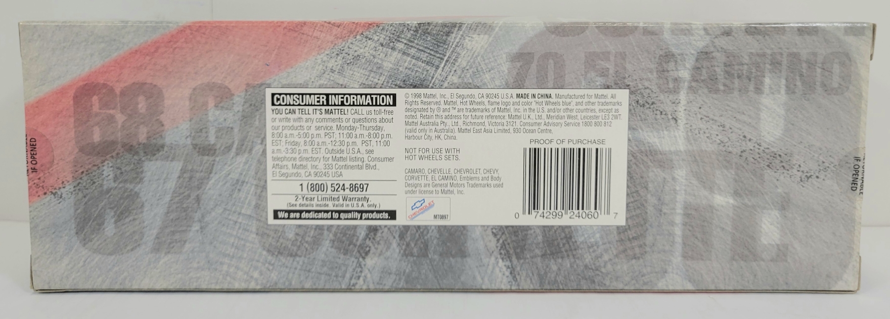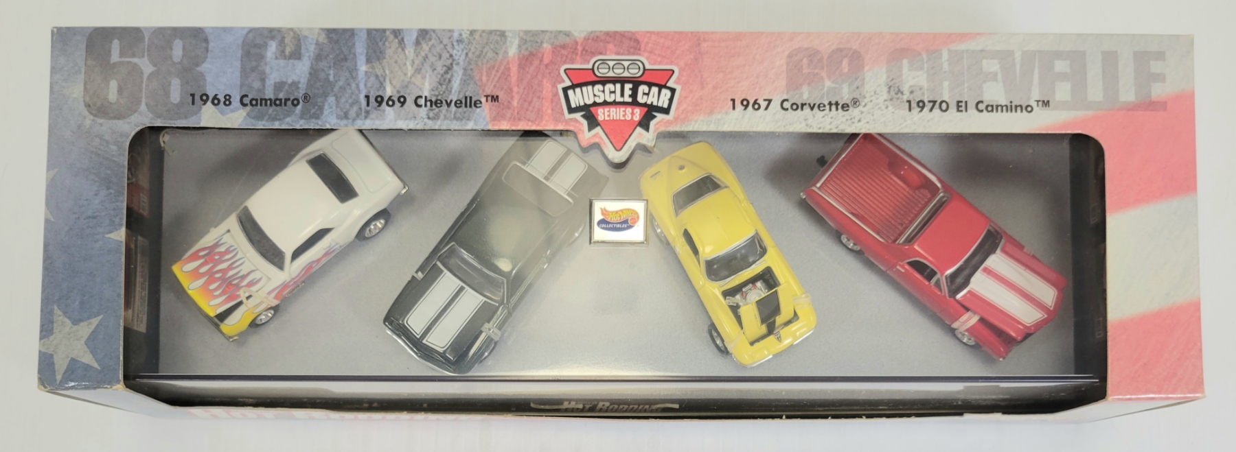 NOTE: 1:64 SCALE - 1968 CAMARO, 1969 CHEVELLE, 1967 CORVETTE & 1970 EL CAMINO.