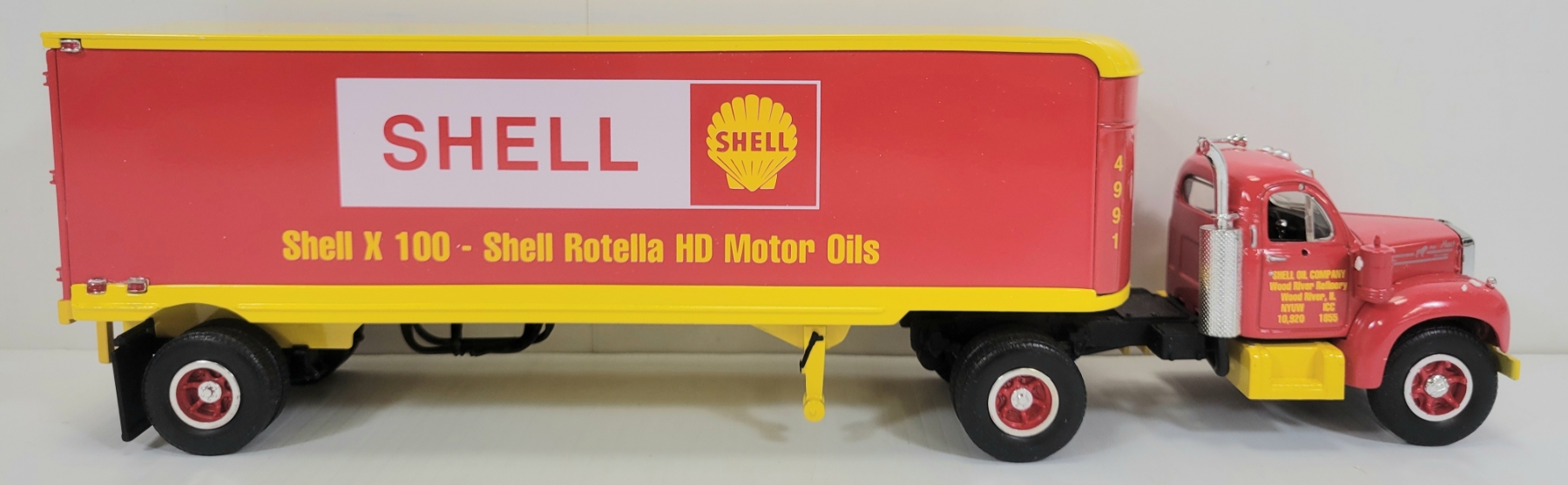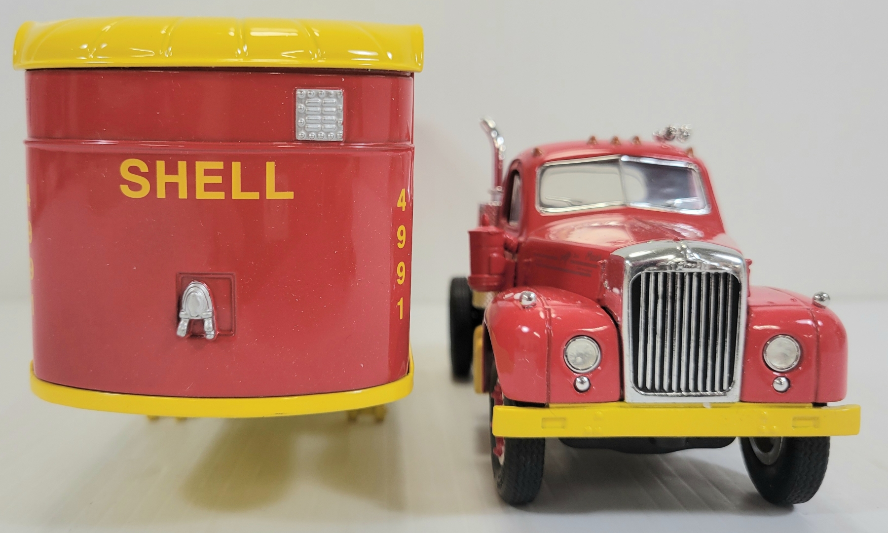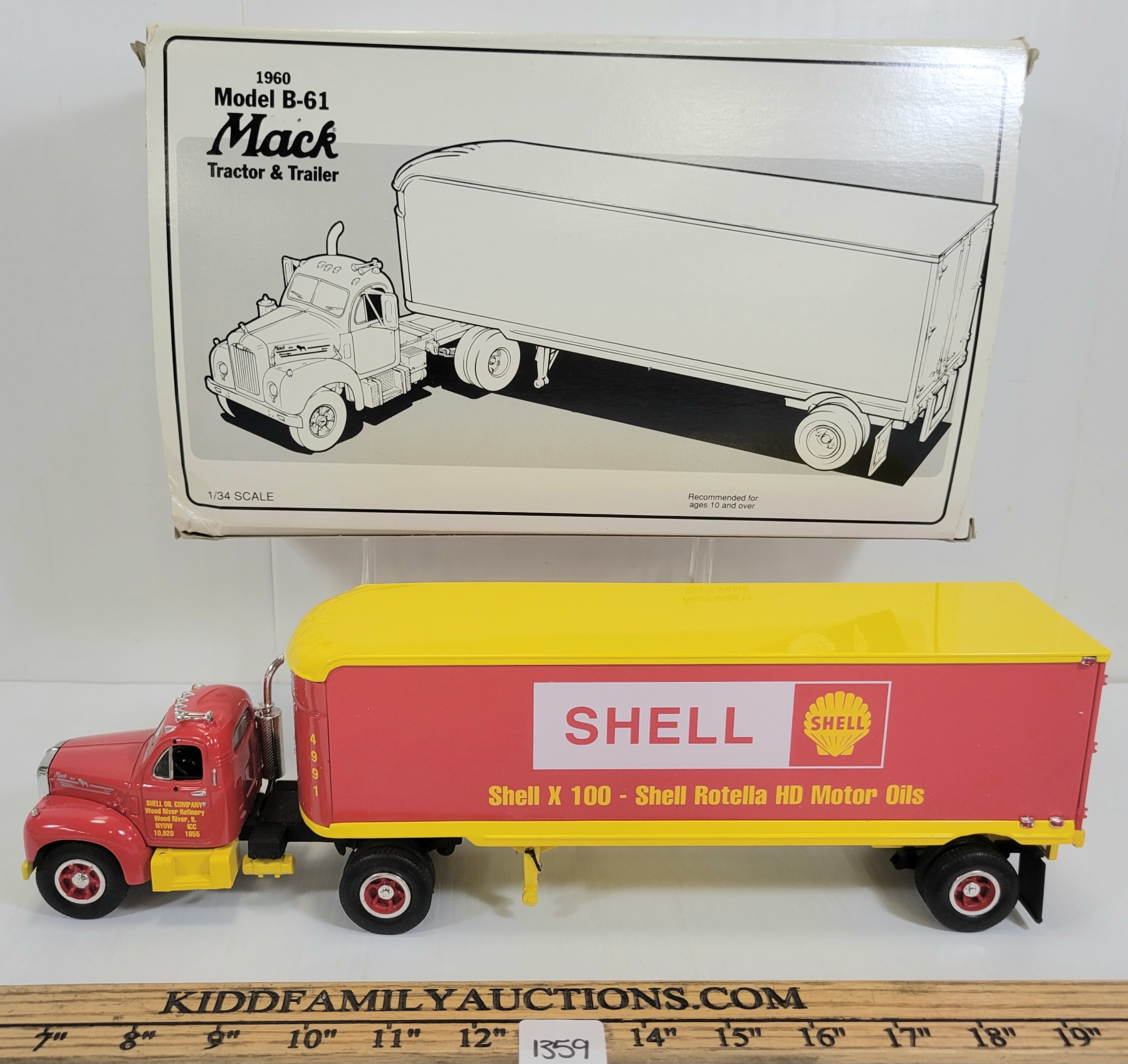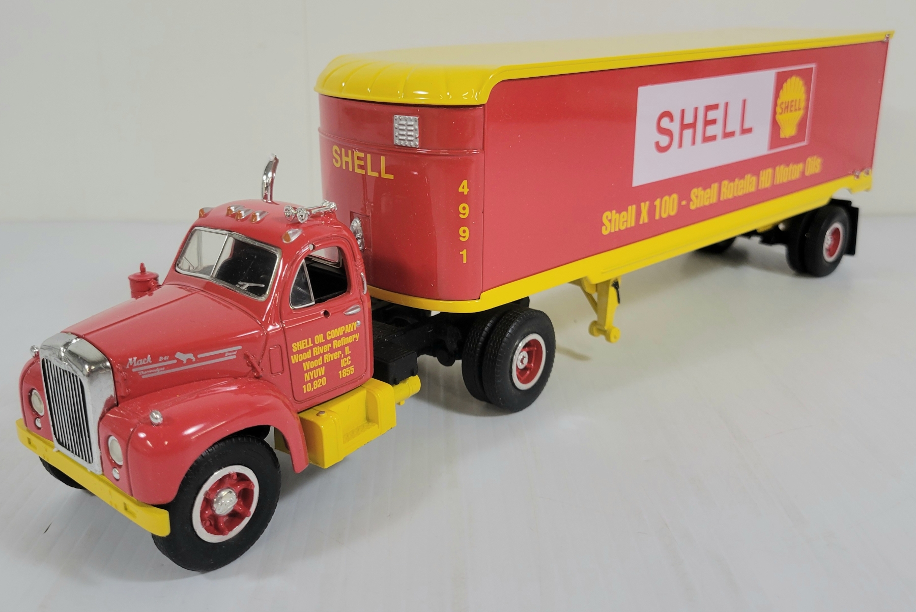 Lot 1359 FIRST GEAR DIECAST 1960 SHELL B-61 MACK TRACTOR & TRAILER