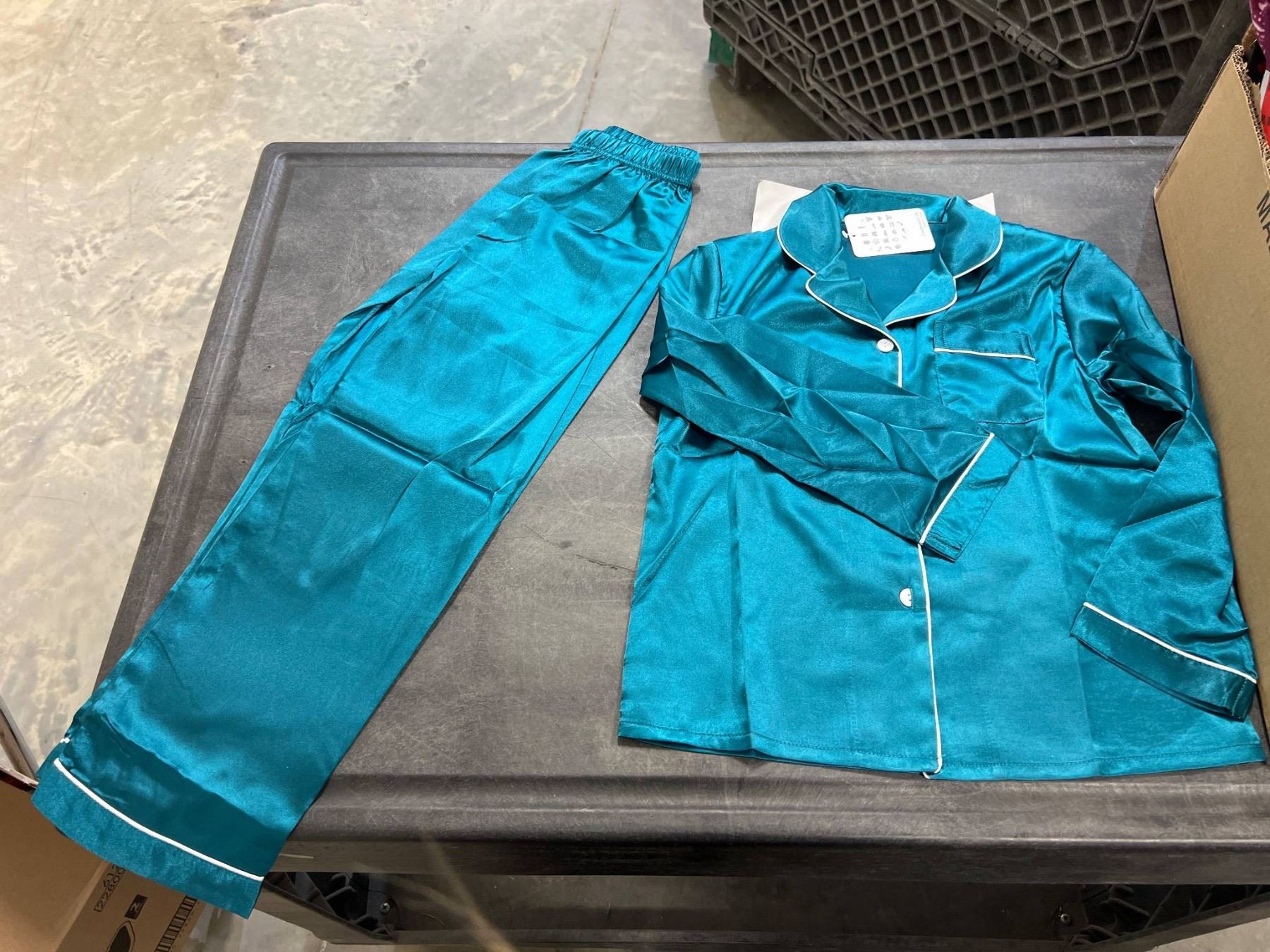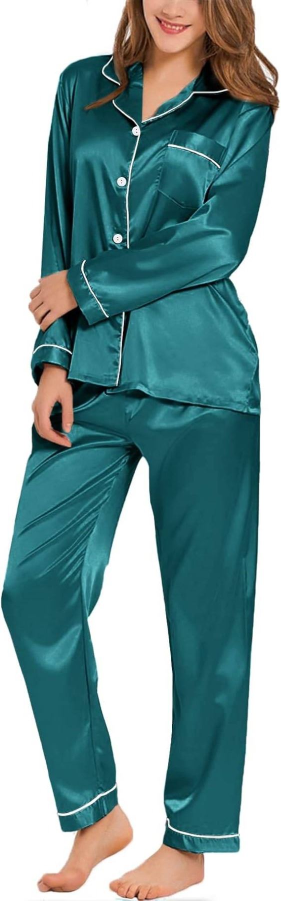 Lot 14 SWOMOG Womens Green Satin Silk Pajamas Long Sleeve Sleepwear Two Pieces Loungewear Button Down Pjs S