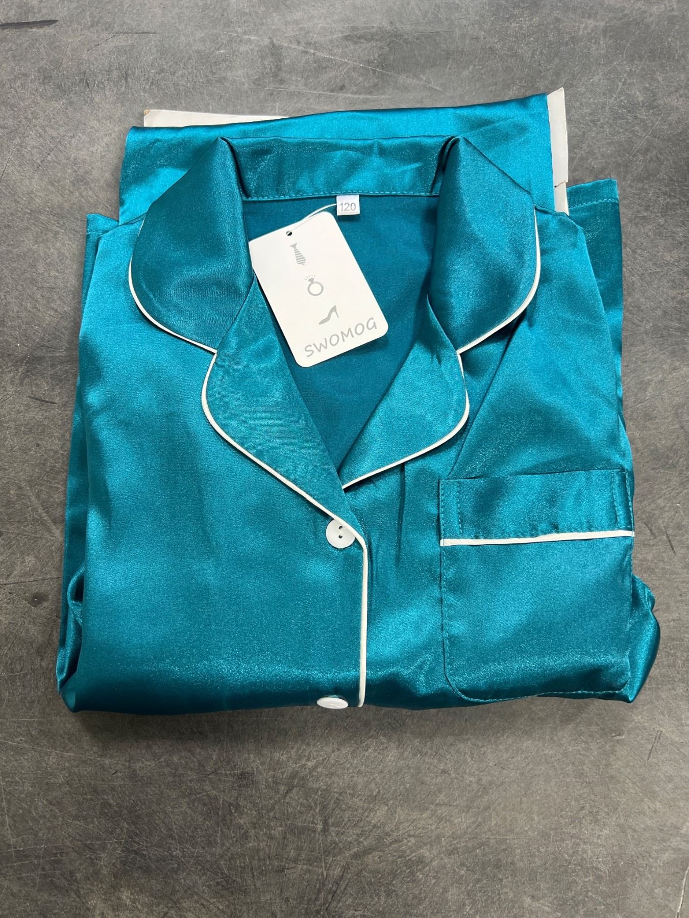 SWOMOG Womens Green Satin Silk Pajamas Long Sleeve Sleepwear Two Pieces Loungewear Button Down Pjs Set - Size 120