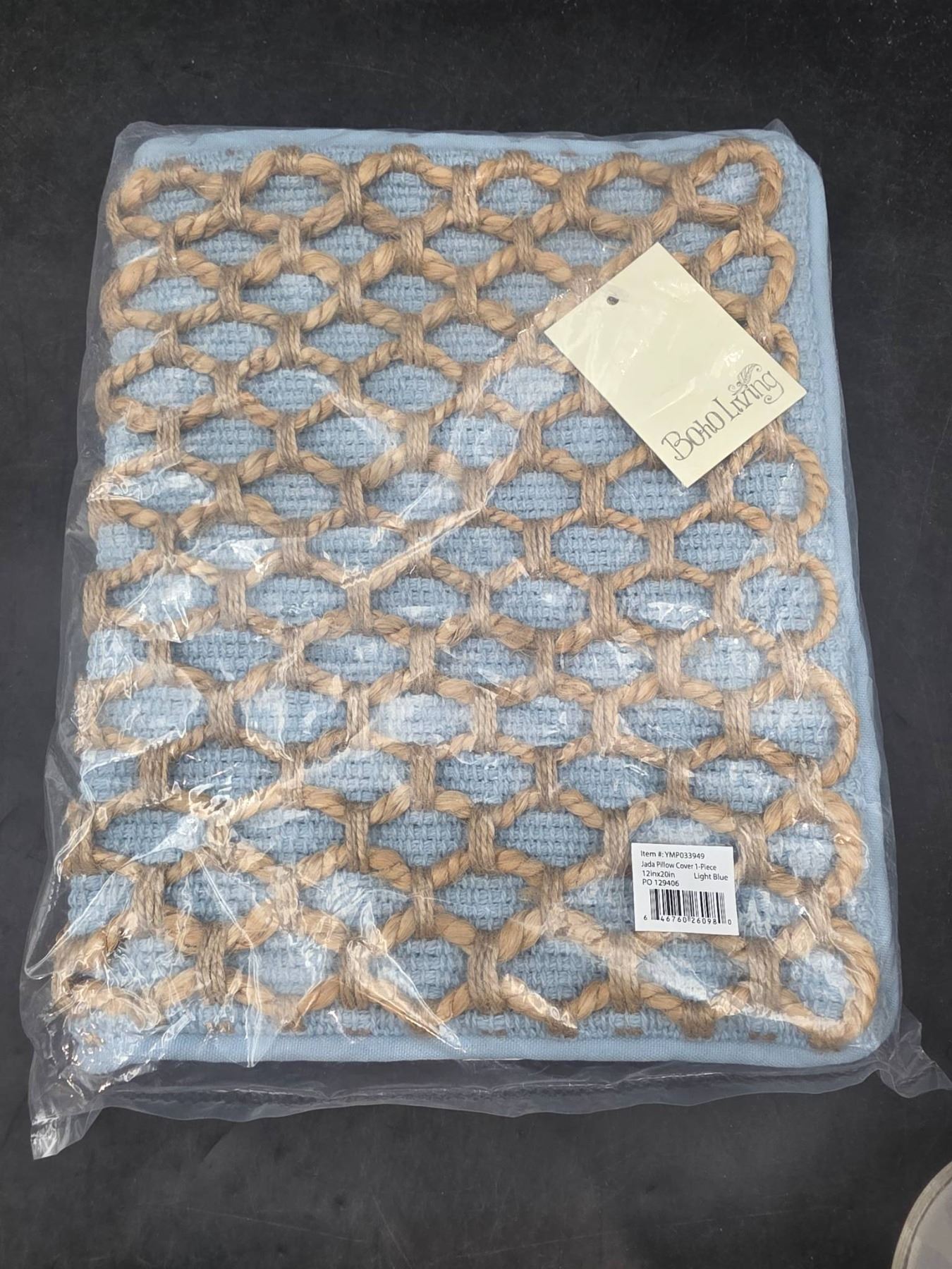 Lot 16 Boho Living Jada Pillow Cover, 12x20in, Light Blue, Item YMP033949