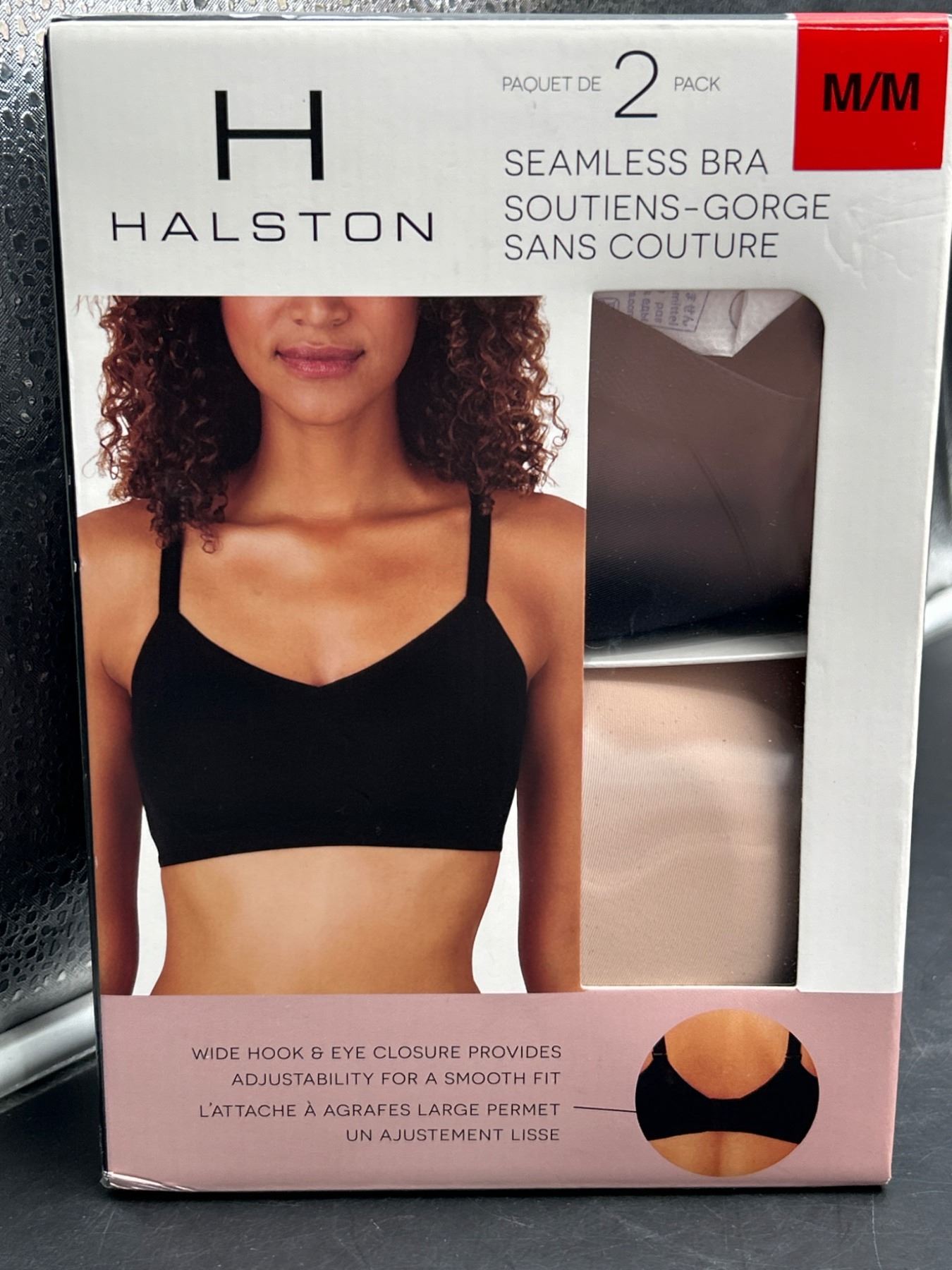 Lot 40 Halston Seamless Bra 2-Pack, Size M/M, Black & Nude