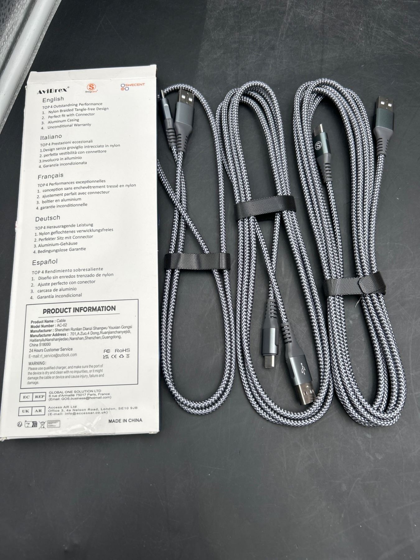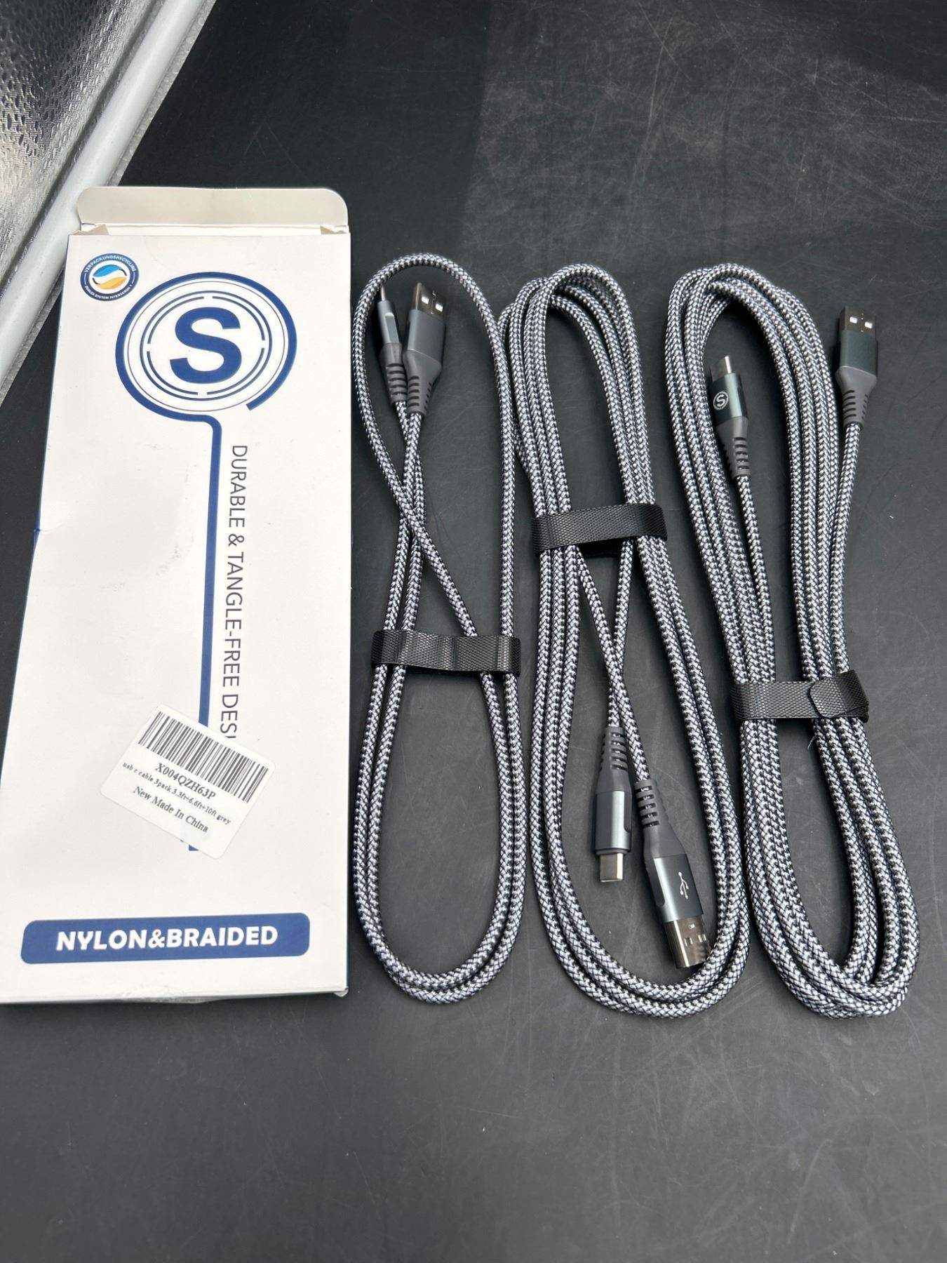 Lot 41 3 Nylon Braided USB-A to USB-C Cables, 10 ft Each