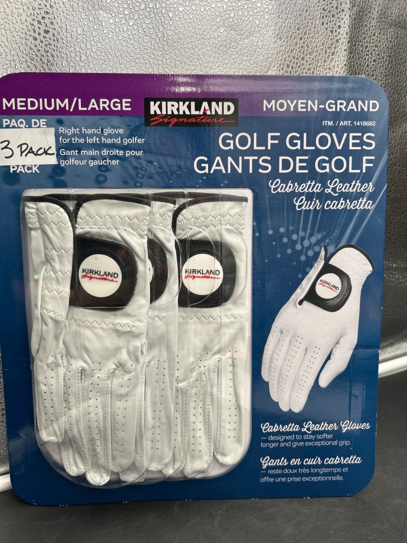 Lot 52 Kirkland Signature Medium/Large Golf Gloves, Cabretta Leather, 3 Pack