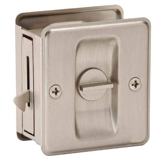 Lot 57 Lot of 2 - Prime-Line Pocket Door Lock and Pull, Satin Nickel, N7369
