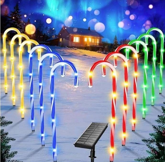 Lot 67 Fohil Solar Candy Cane Lights, 12 Pack Waterproof Solar Christmas Lights Outdoor, 8 Lighting Modes S