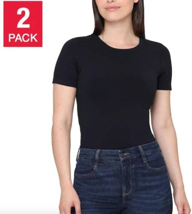 Tahari Ribbed Cotton Short Sleeve T-Shirt, L/G, Pack of 2 (Black & White)