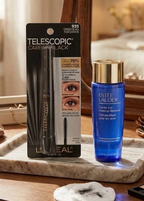 L'Oreal Telescopic Carbon Black Mascara and Estee Lauder Gentle Eye Makeup Remover