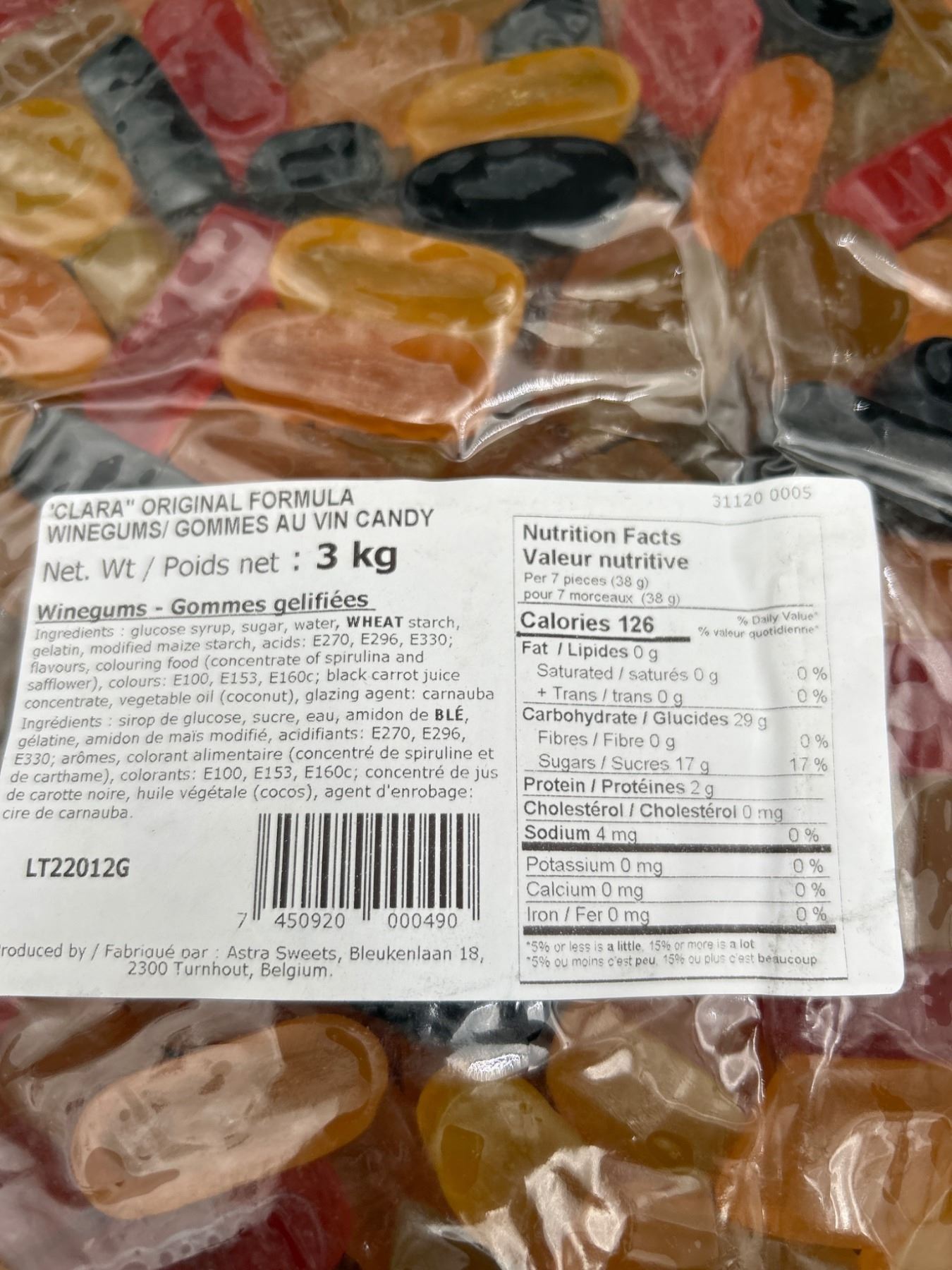Lot 118 Clara Original Formula Winegums 3 kg Bag