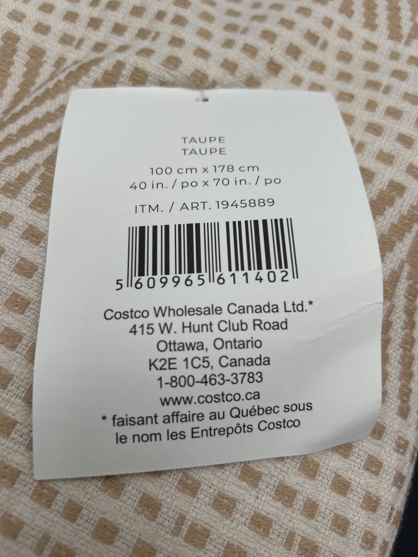Lot 130 Made In Portugal Taupe Throw Blanket 100 cm x 178 cm