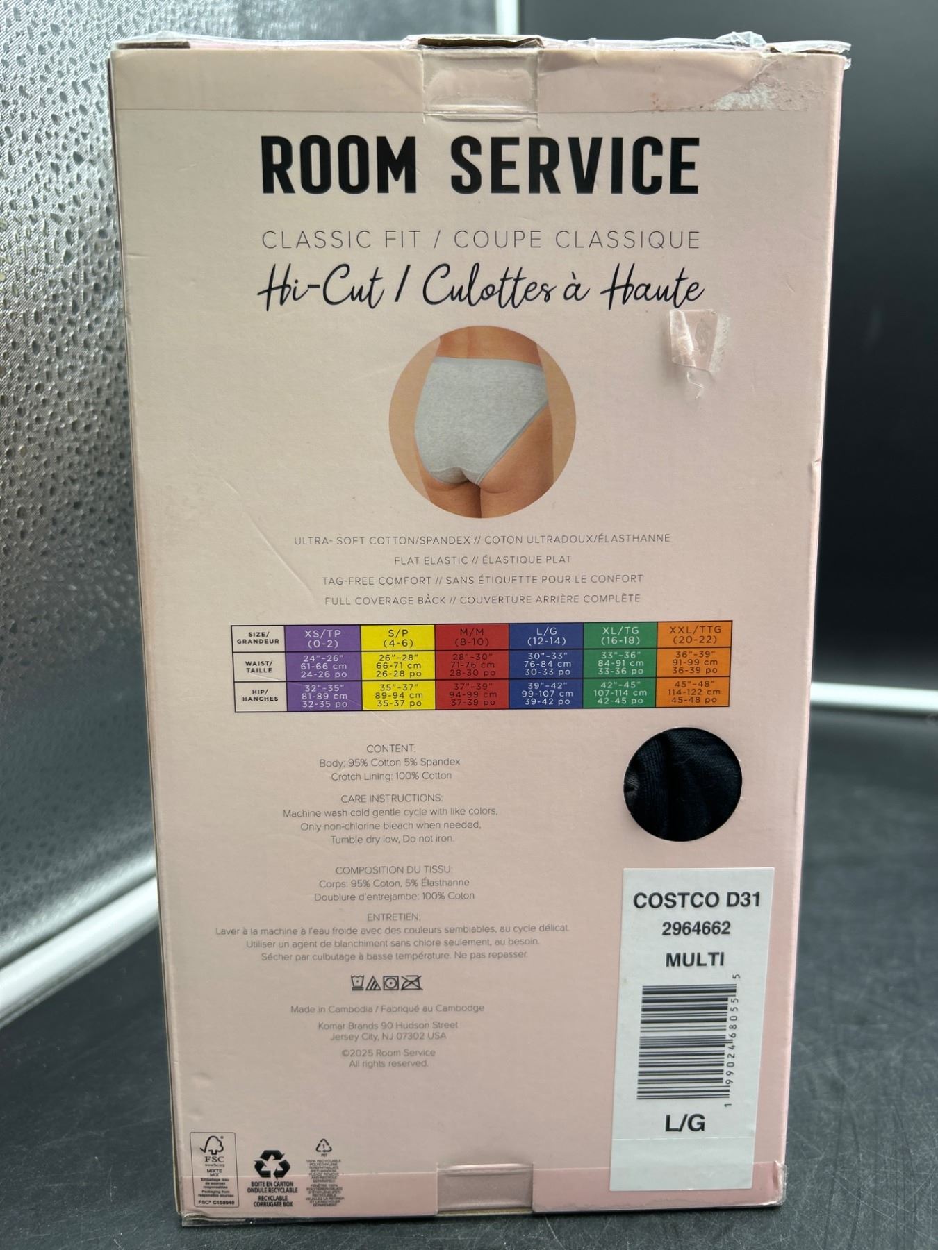Room Service 6-Pack Hi-Cut Briefs, Size L/G, Multi-Color