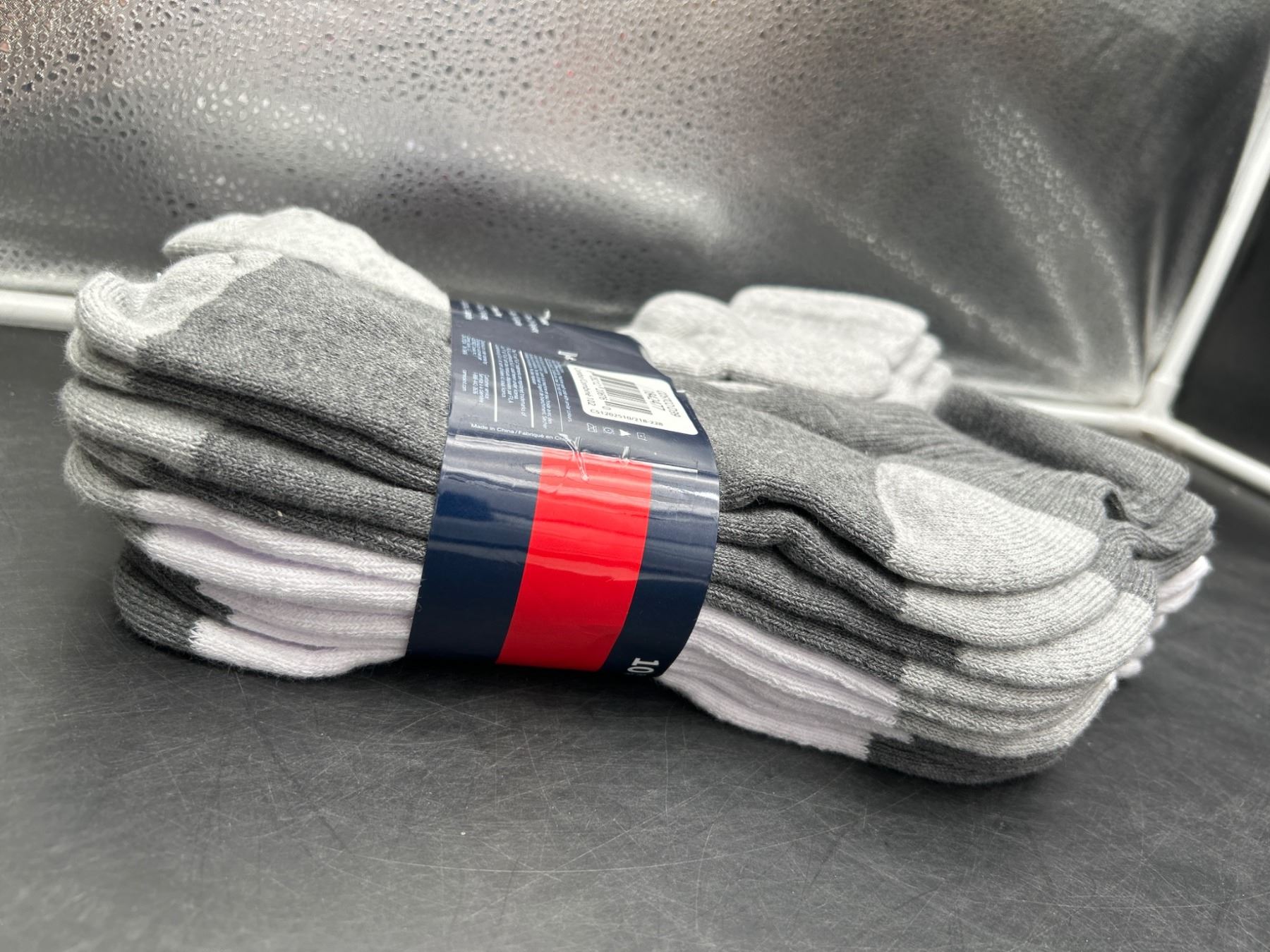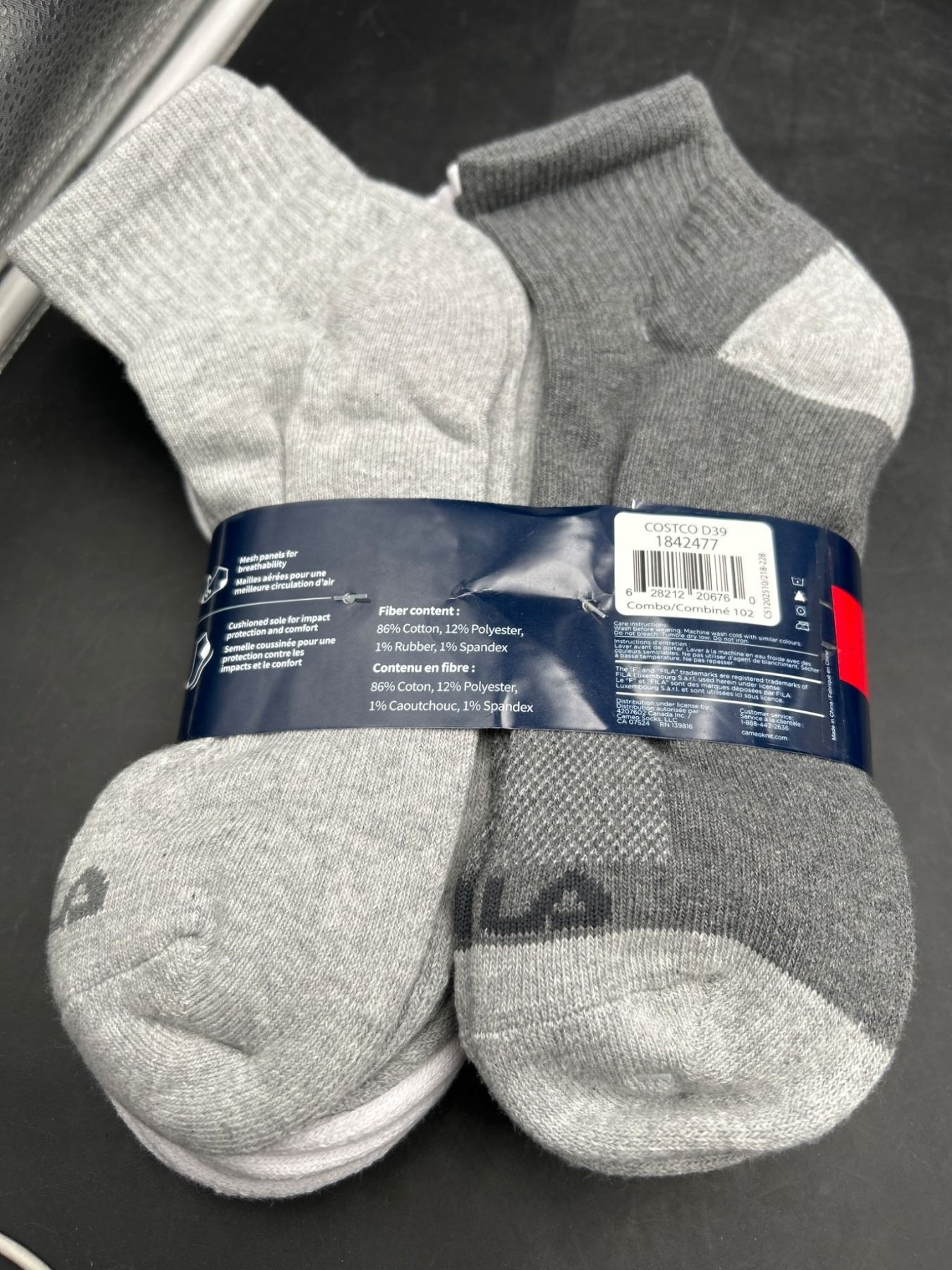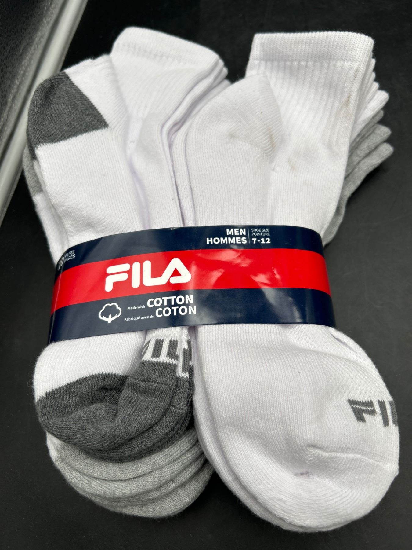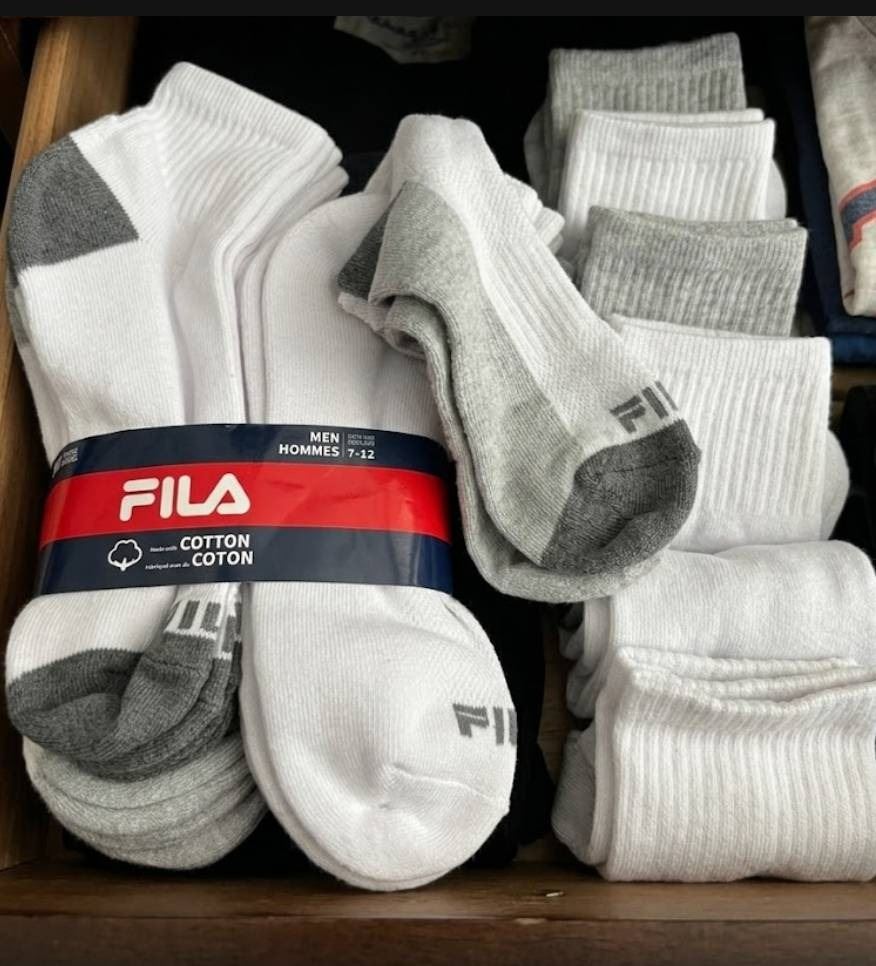 Lot 169 Fila Men's Cotton Socks, Size 7-12, White and Gray, Pack of 6 Pairs