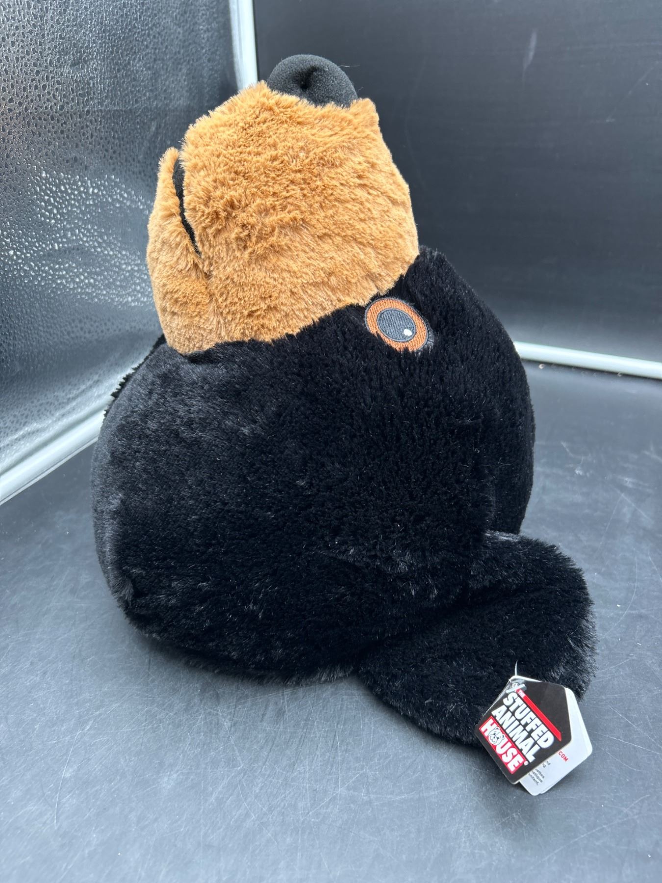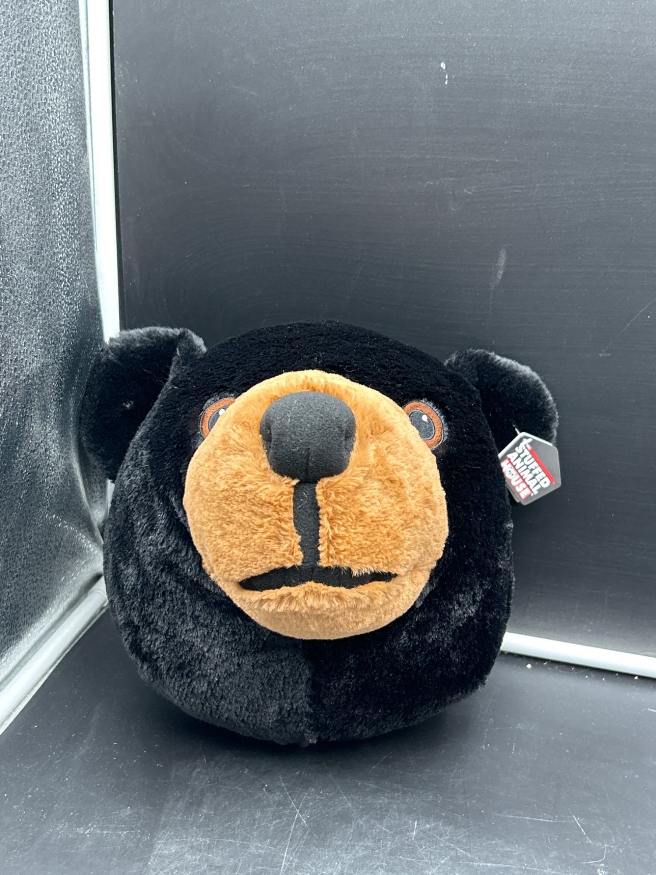 Plush Black Bear Head Pillow with Side Tag from Stuffed Heads Wildlife Series