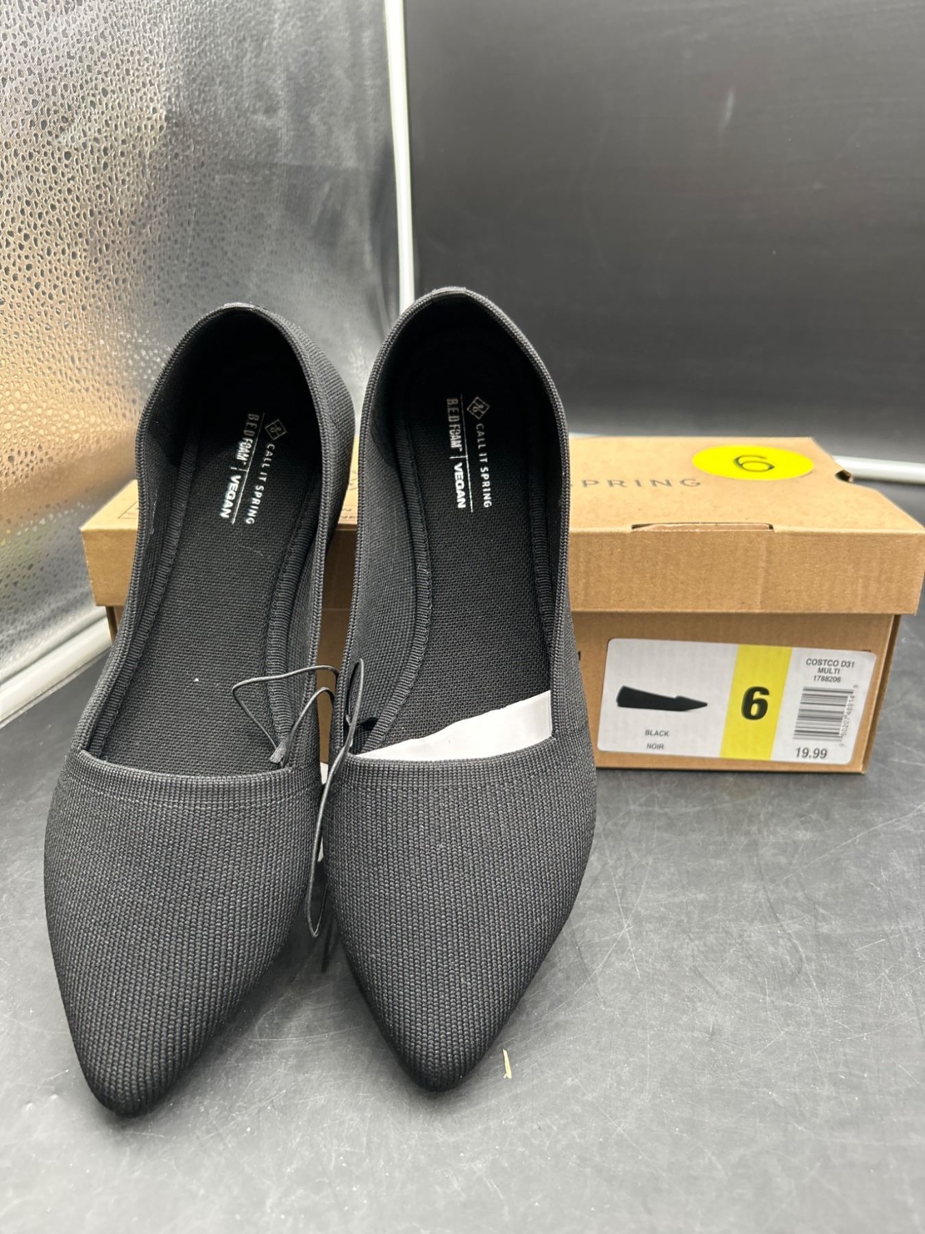 Lot 189 Call It Spring Women's Pointed Toe Flats, Black, Size 6