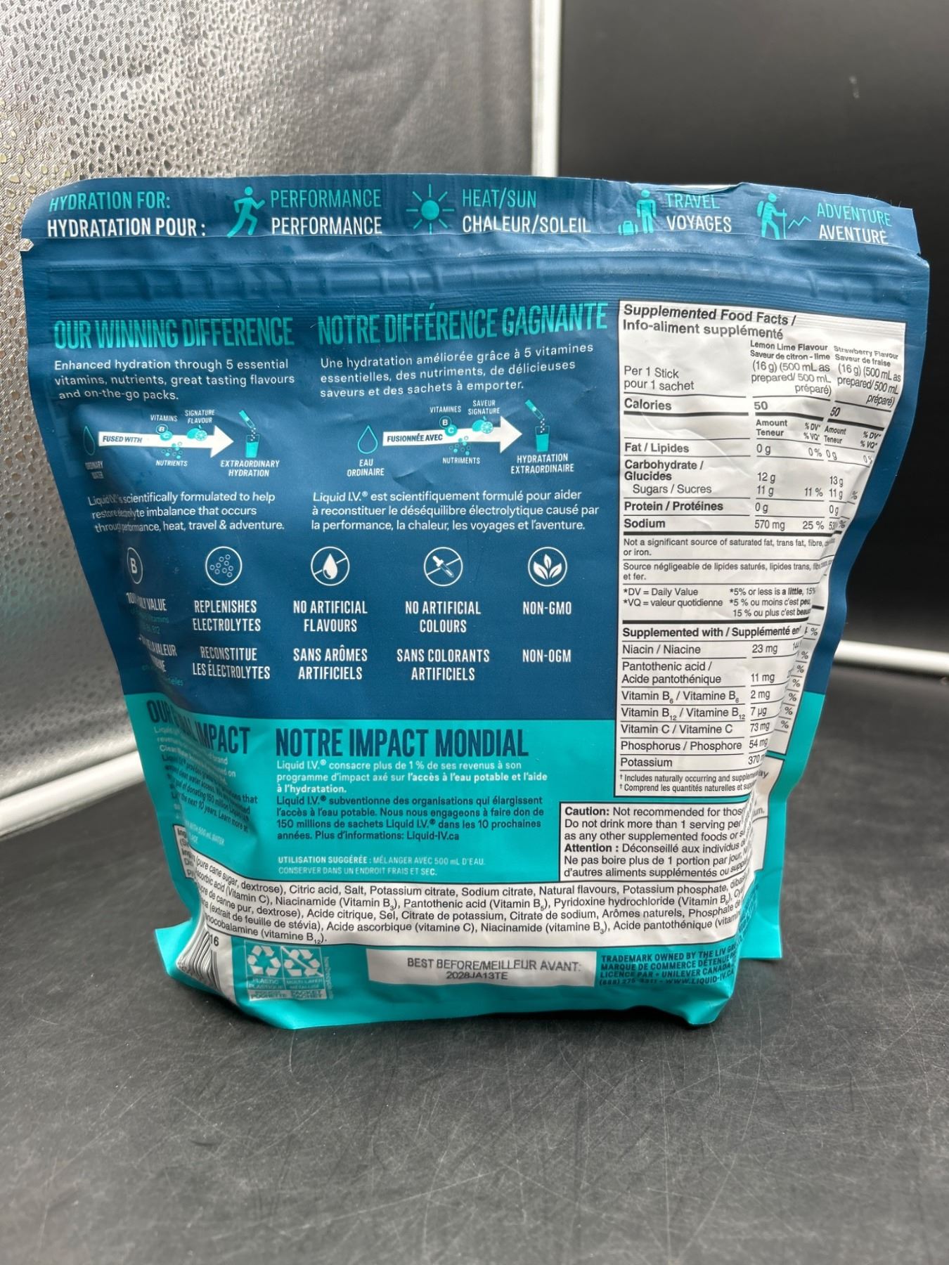 Lot 190 Liquid I.V. Hydration Multiplier Electrolyte Drink Mix, 30 Stick Packets