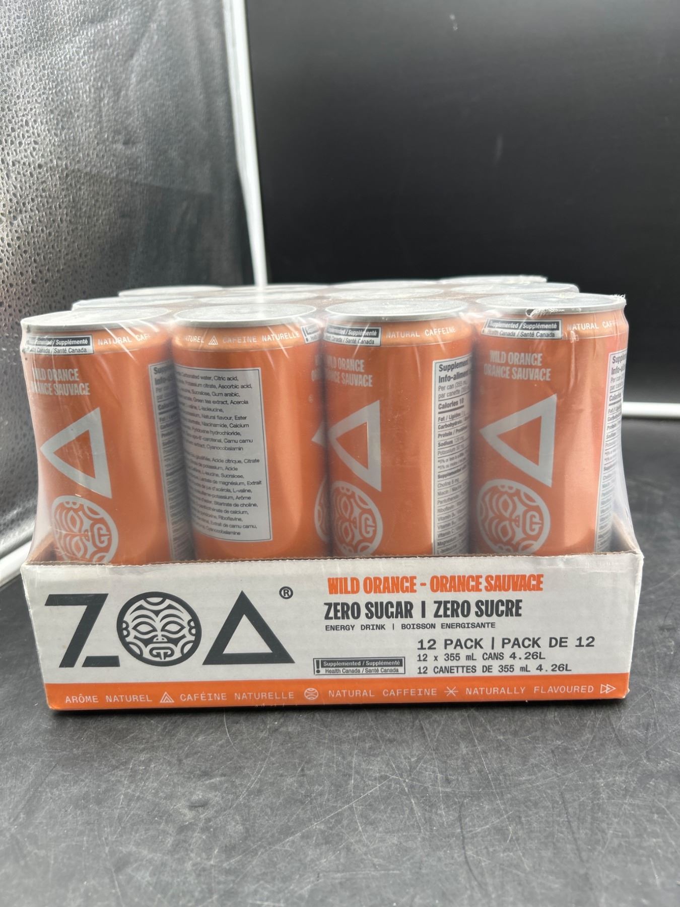 Lot 230 ZOA Wild Orange Energy Drink, Zero Sugar, 12-Pack, 355 mL Each