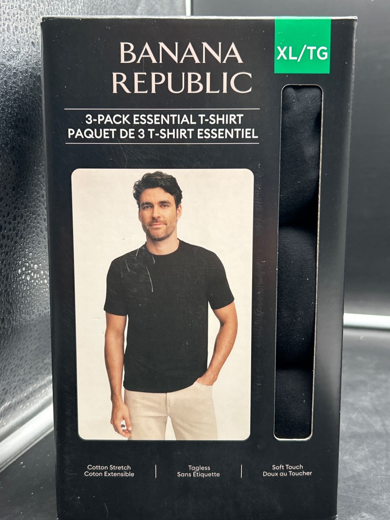 Lot 231 Banana Republic XL 3-Pack Essential T-Shirts, Cotton Stretch, Black