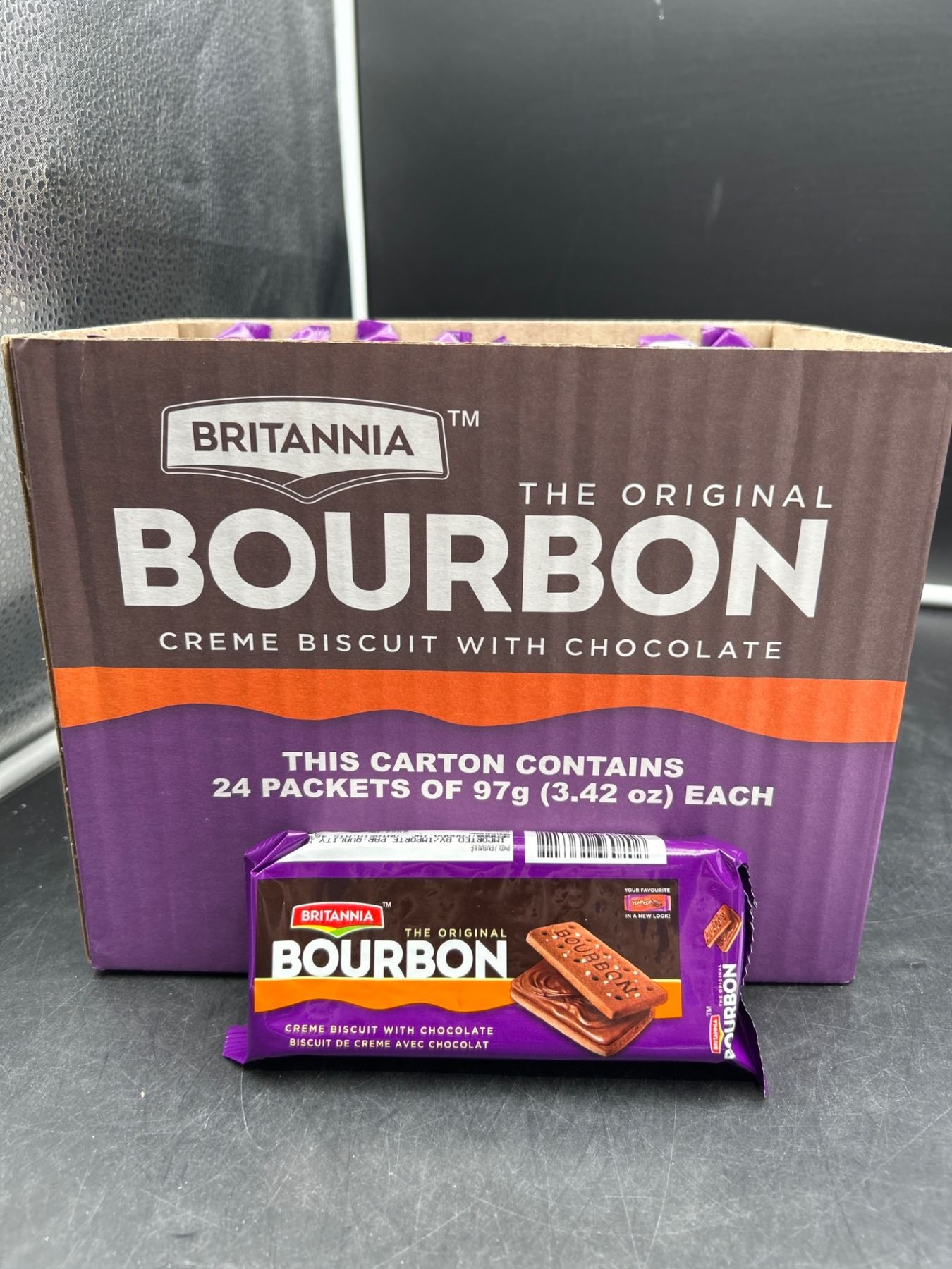 Lot 238 Britannia Bourbon Creme Biscuit with Chocolate, 24 x 97g Packets
