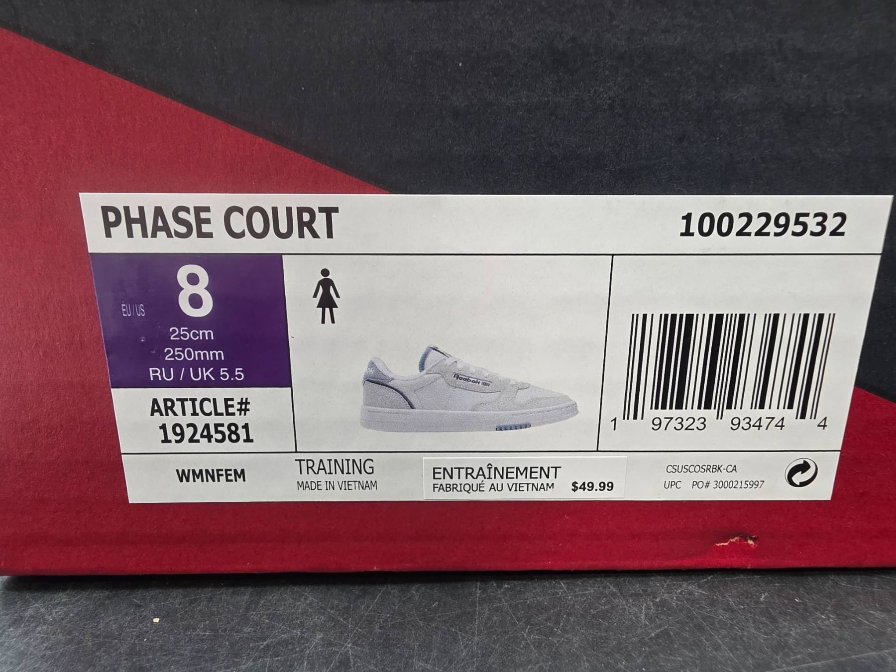 Lot 263 Reebok Phase Court Shoes, Size 8, Article Number 1924581