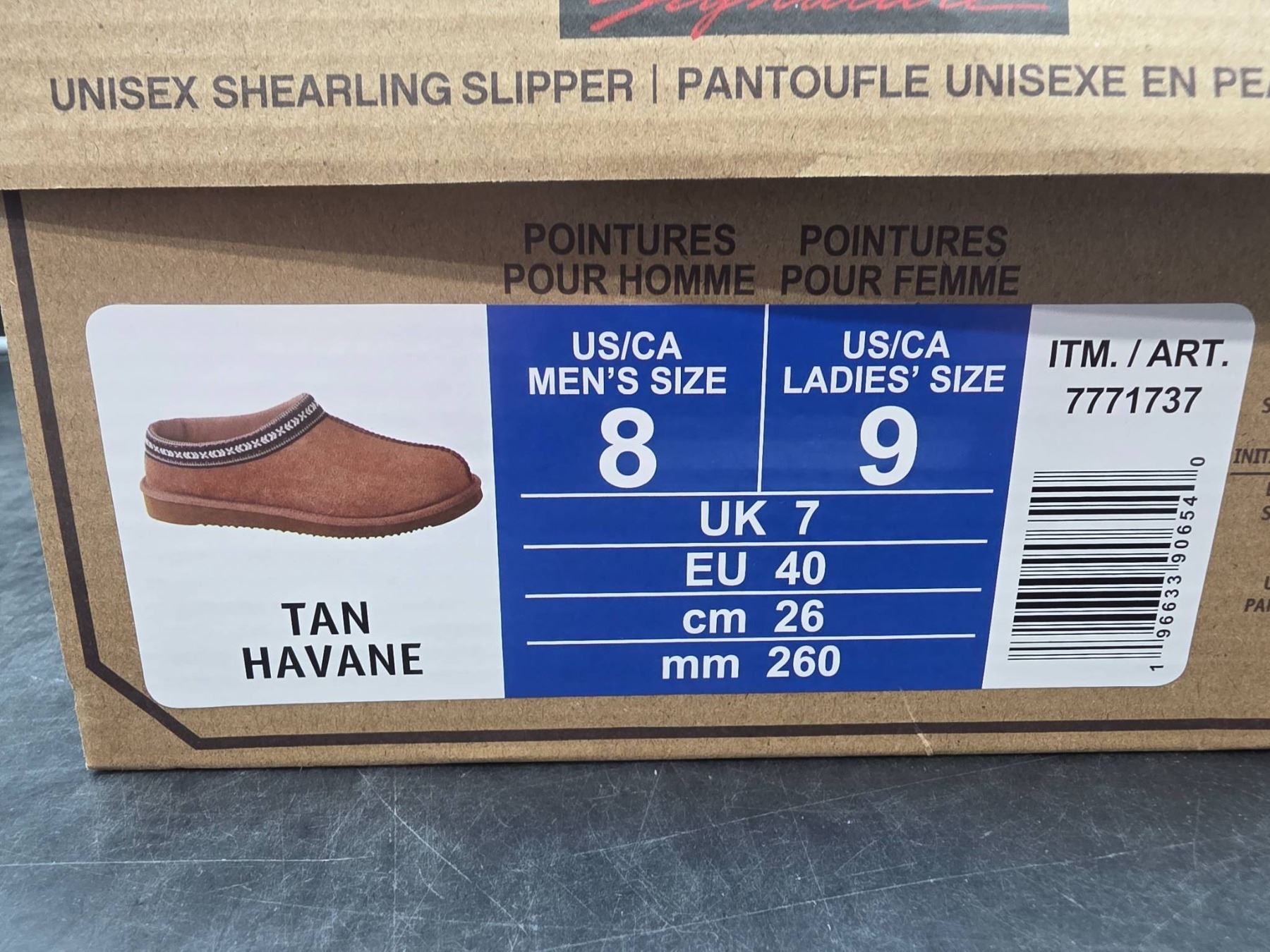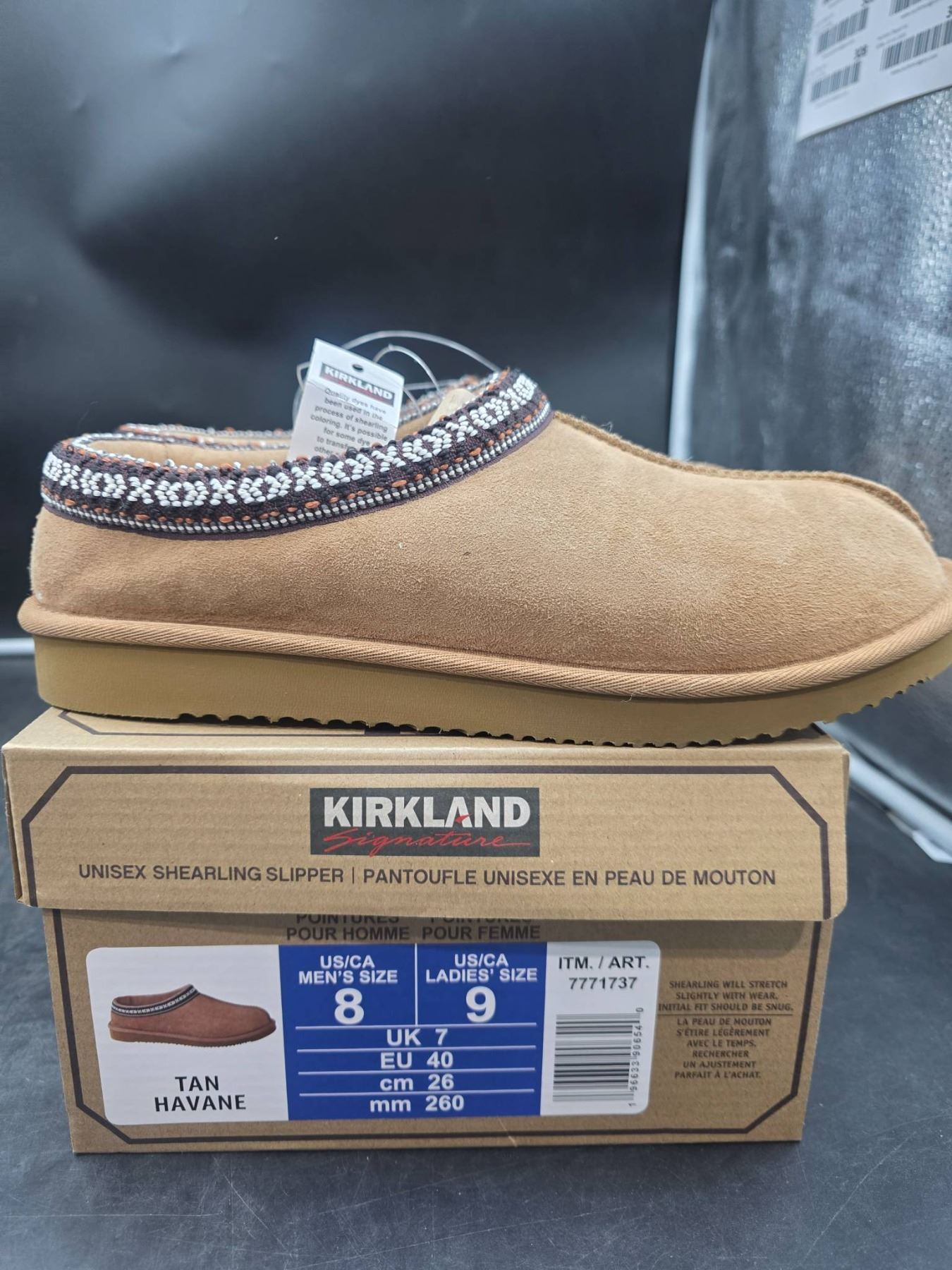 Lot 269 Kirkland Shearling Slipper, Tan, Men's Size 8, Women's Size 9