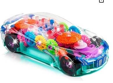 ArtCreativity Light Up Transparent Sensory Car Toy for Kids, 1PC, Bump and Go Toy Car with Colorful Moving Gears, Music, and LED Effects