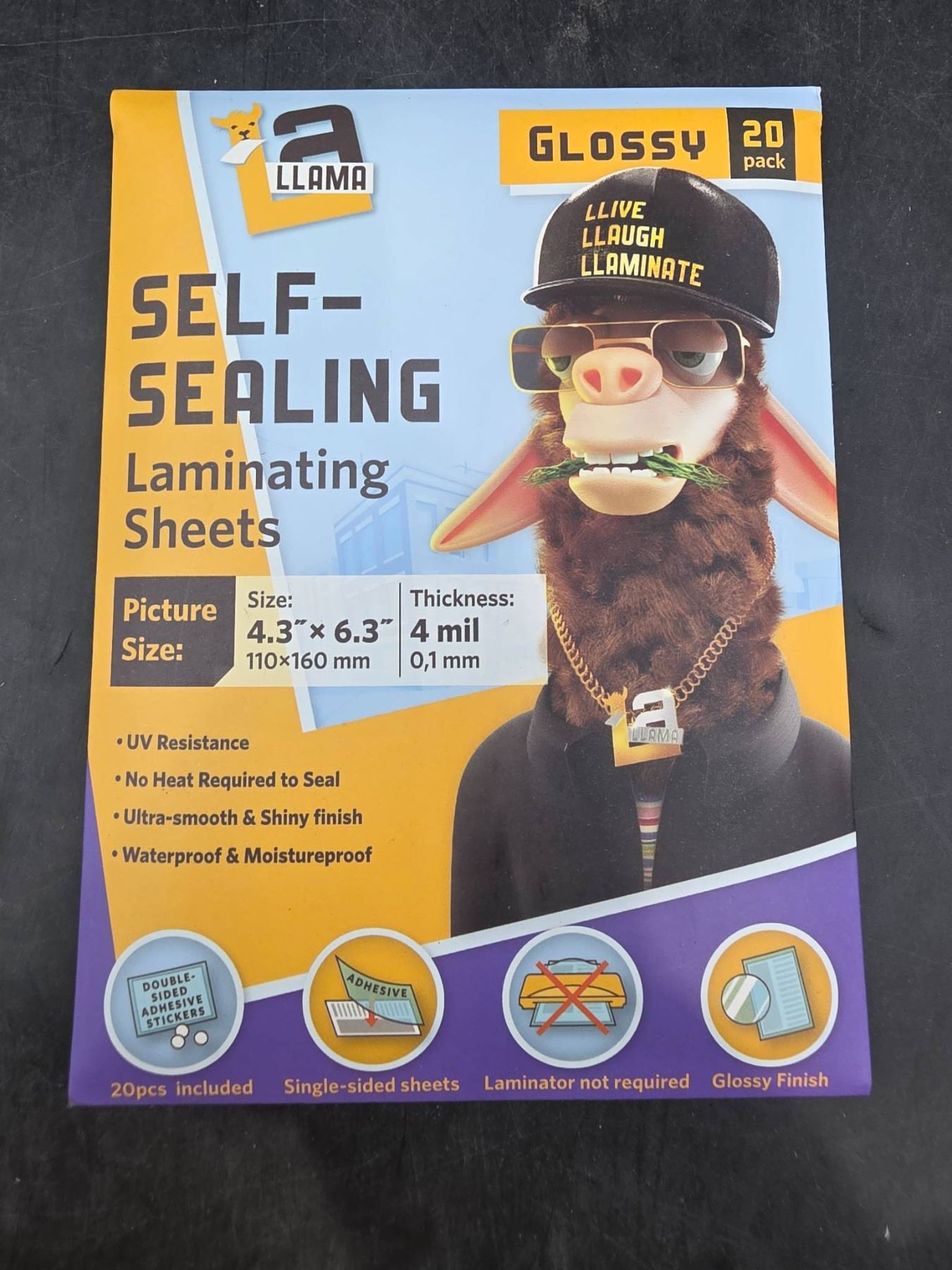 Lot 314 Llama Self-Sealing Laminating Sheets 20 Packs 4.3 x 6.3 Inches Glossy
