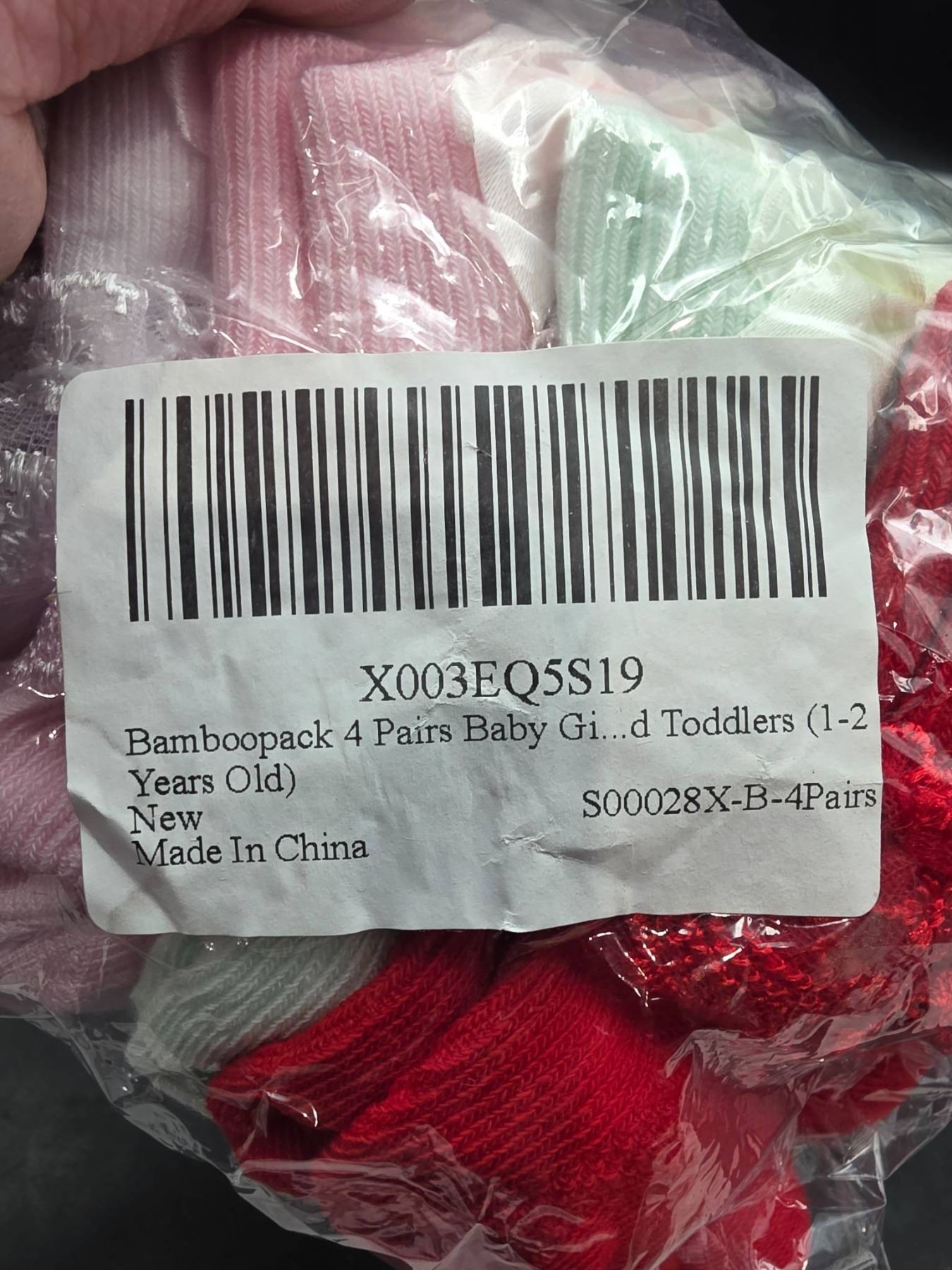 Lot 371 Bamboopack 4 Pairs Baby Girls' and Toddlers' Socks, 1-2 Years, Made in China