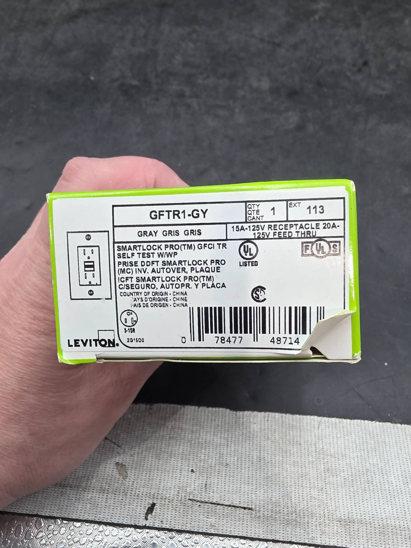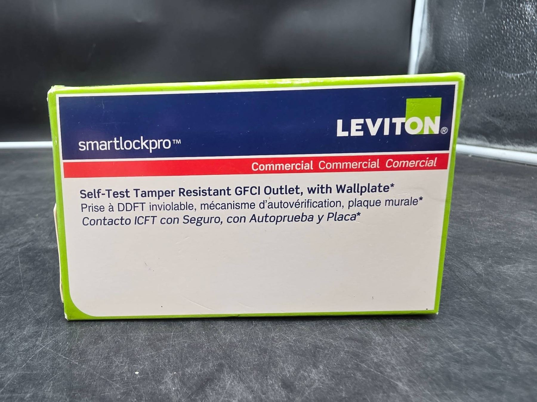 Lot 394 Leviton SmartlockPro Self-Test Tamper Resistant GFCI Outlet, GFTR1-GY