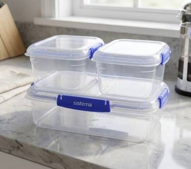 Sistema Food Storage Containers with Blue Clips, Set of 3