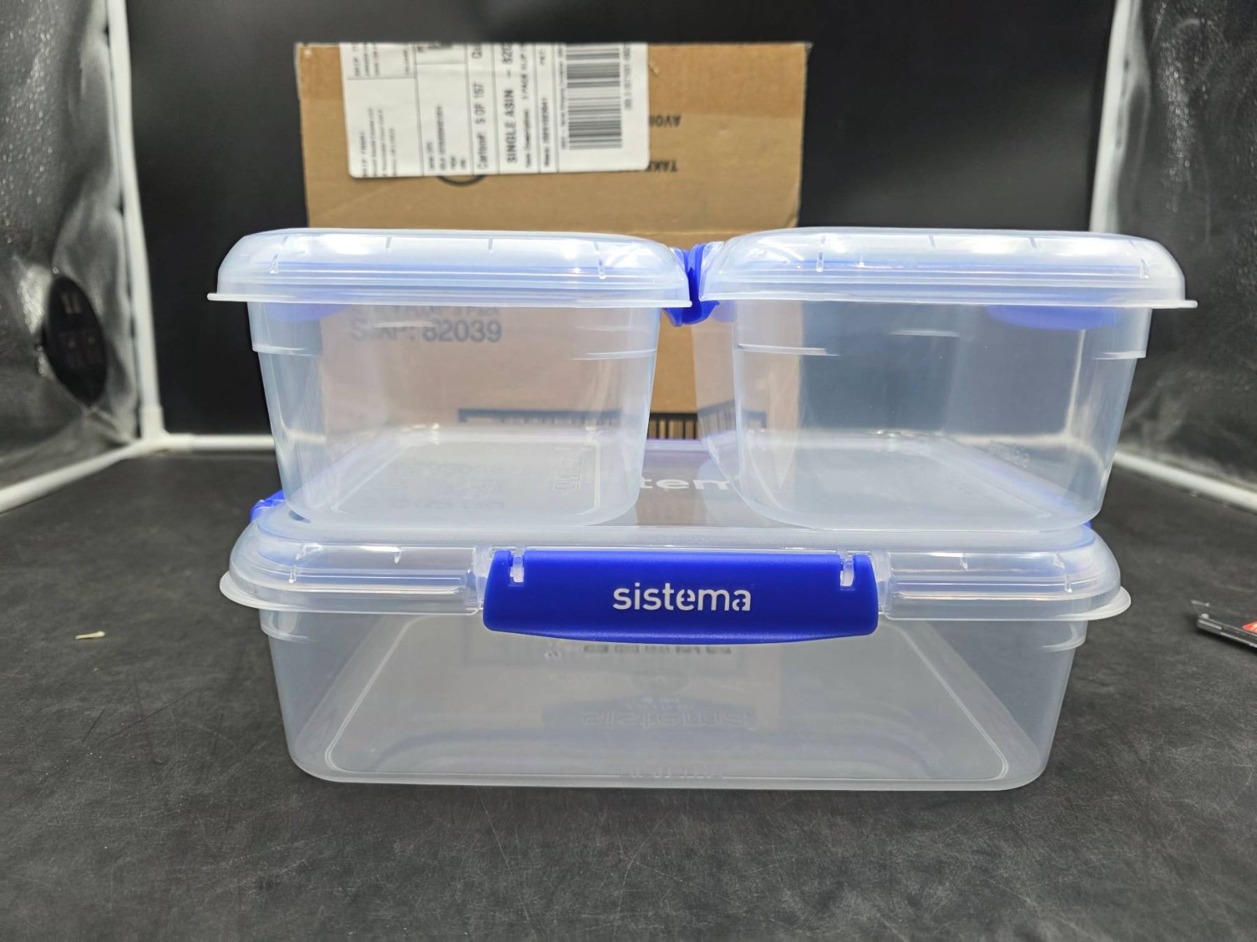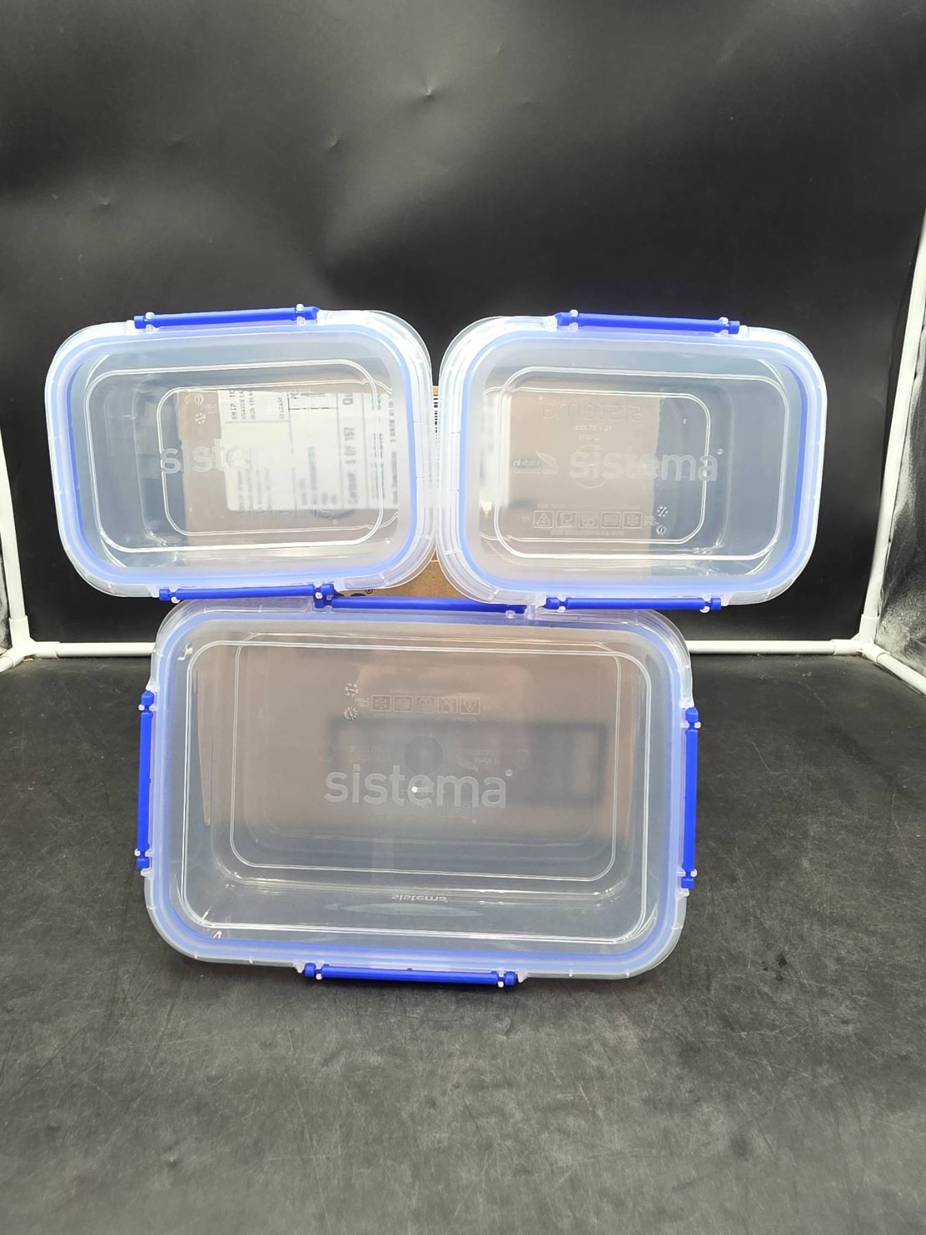 Lot 406 Sistema Food Storage Containers with Blue Clips, Set of 3