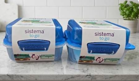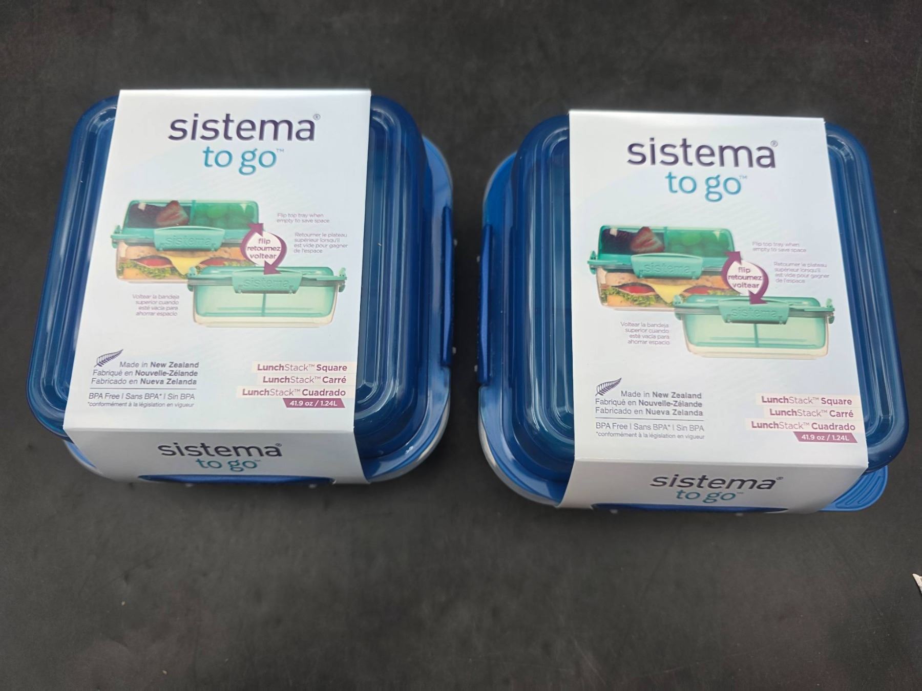 Lot 412 Sistema To Go LunchStack Square Food Containers, 1.24L, Set of 2, Made in New Zealand