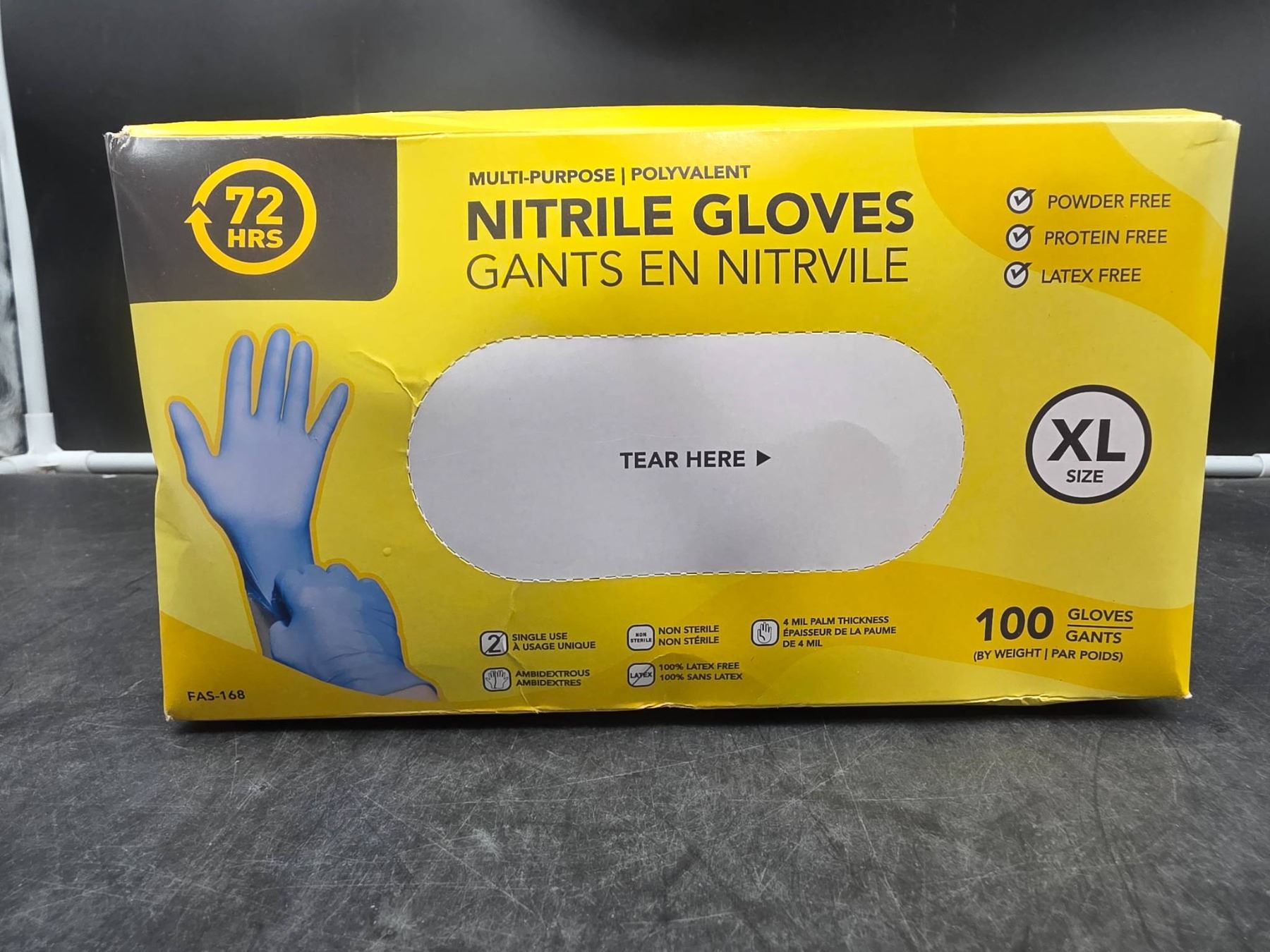 Lot 426 FAS-168 XL Nitrile Gloves, Powder-Free, Latex-Free, Multipurpose, 100 Count