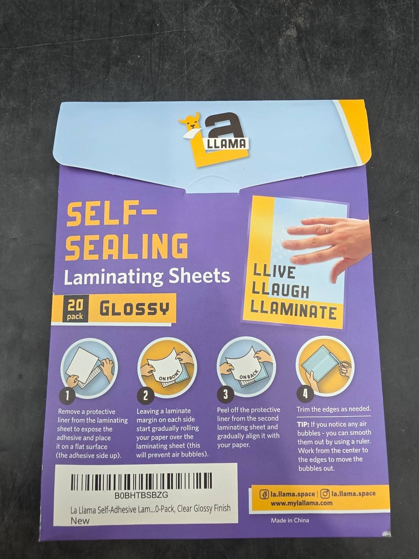 Llama Self-Sealing Laminating Sheets 20 Packs 4.3 x 6.3 Inches Glossy