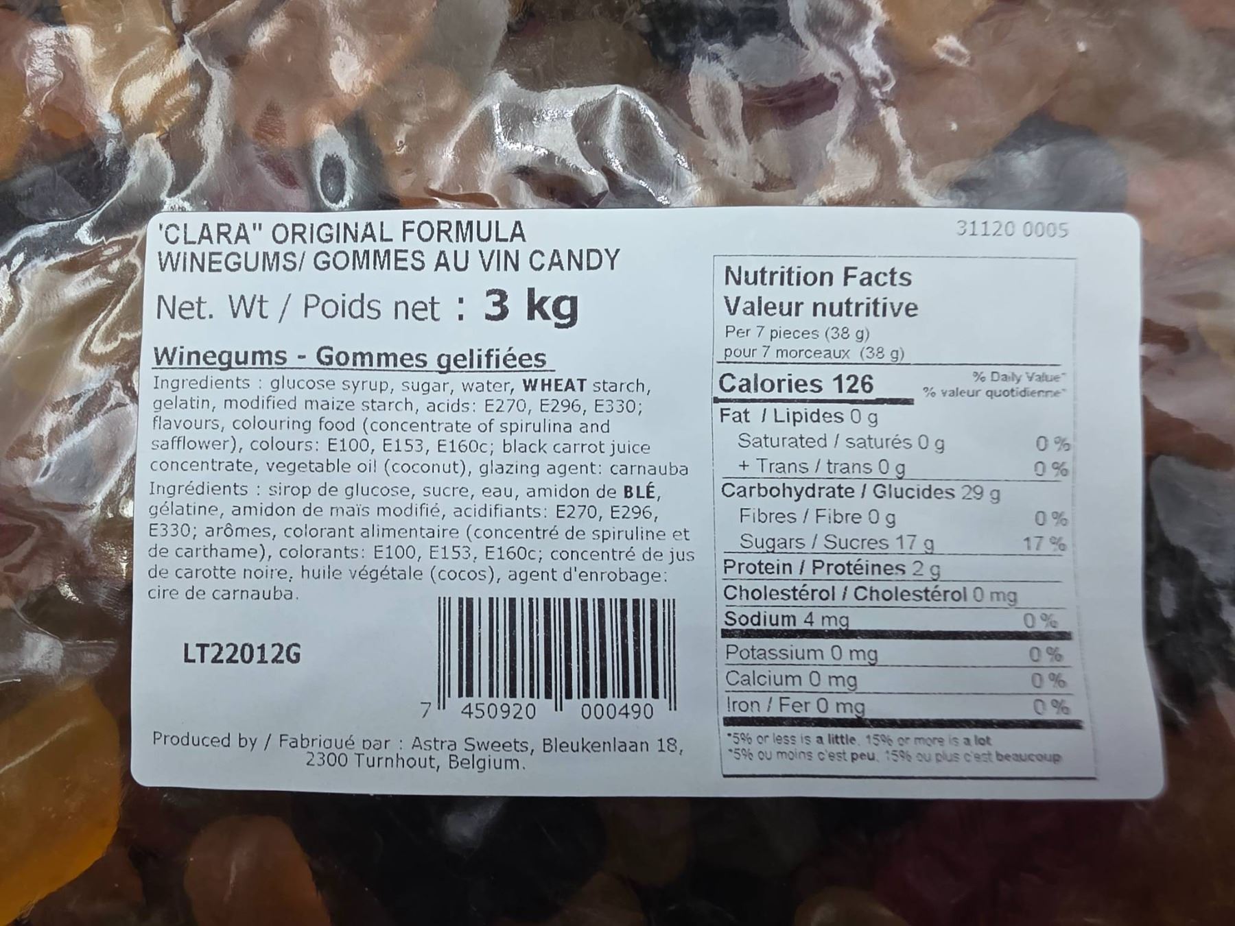 Lot 473 Clara Winegums Gomme au Vin Candy 3kg Bulk Pack