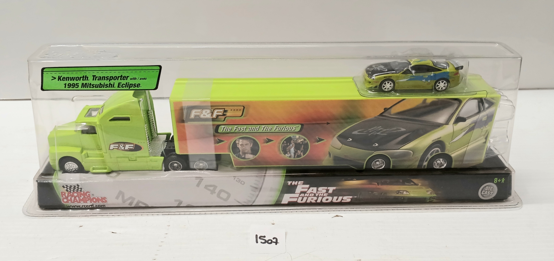 Lot 1507 RACING CHAMPIONS DIECAST 1995 MITSUBISHI ECLIPSE KENWORTH TRANSPORTER - FAST & FURIOUS - SEALED