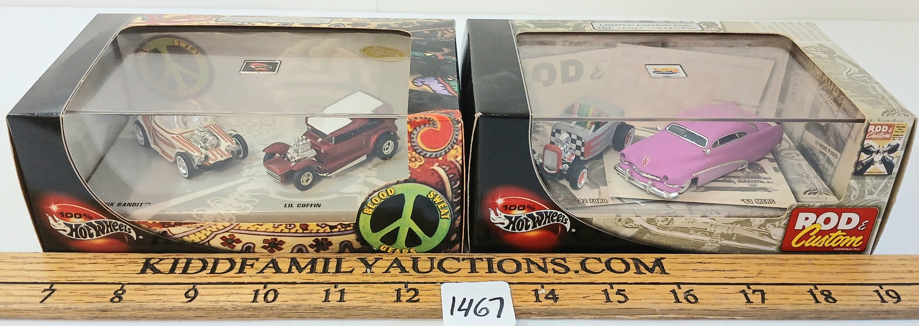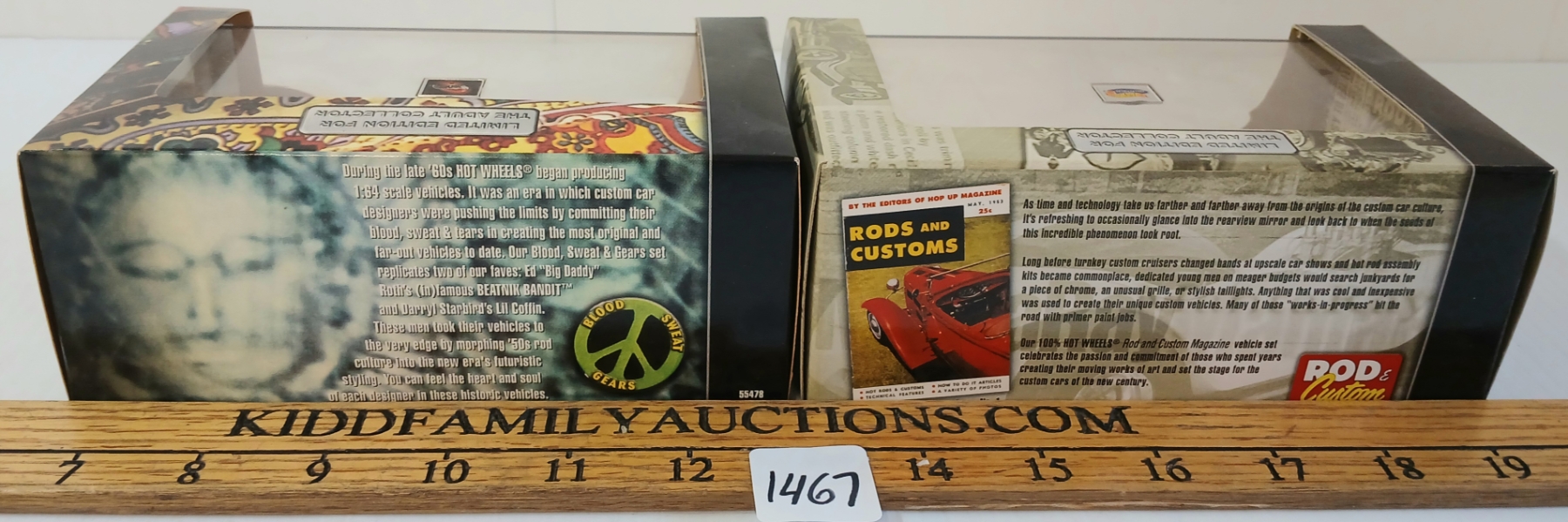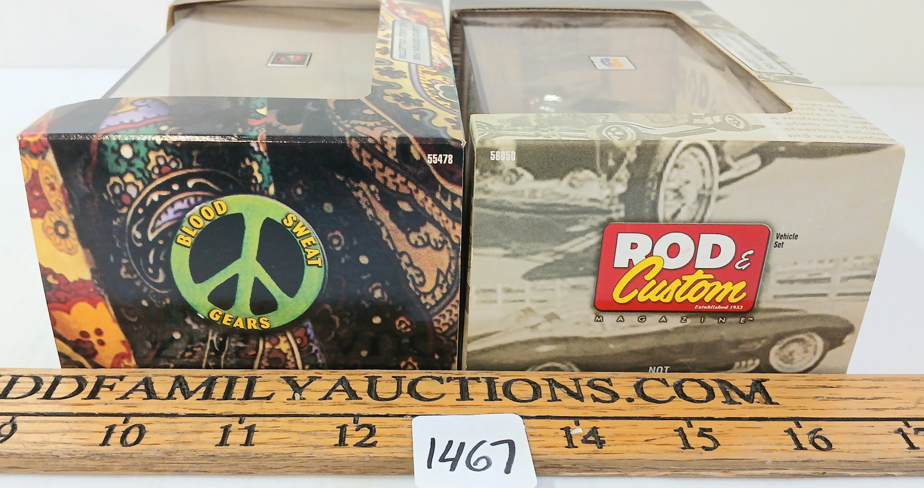 Lot 1467 LOT OF 2 - HOTWHEELS ROD & CUSTOM MAGAZINE & BLOOD SWEAT GEARS DIECAST MODEL SETS