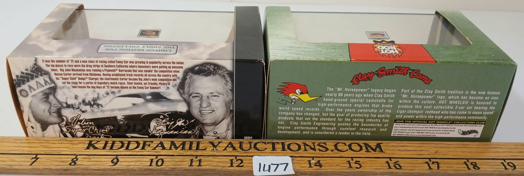 Lot 1477 LOT OF 2 - HOTWHEELS CLAY SMITH CAMS & FUNNY CAR SUMMER DIECAST MODEL SETS