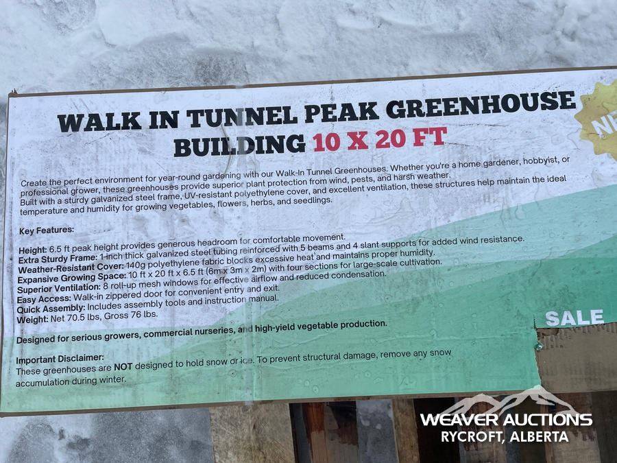 Lot 700 10 X 20 FT. WALK IN TUNNEL GREENHOUSE