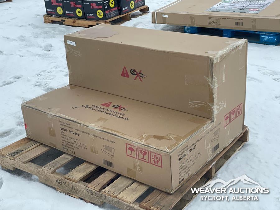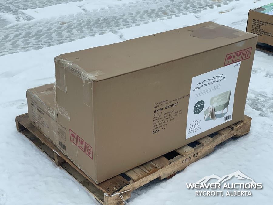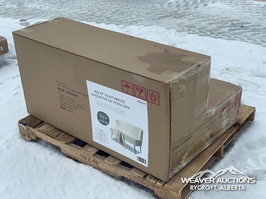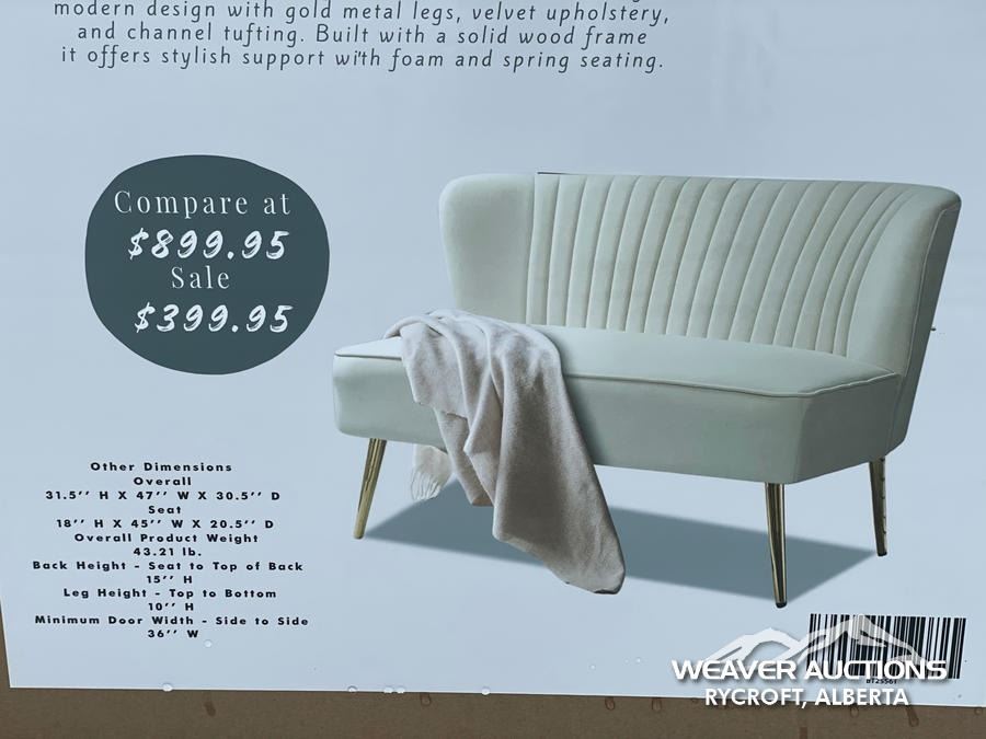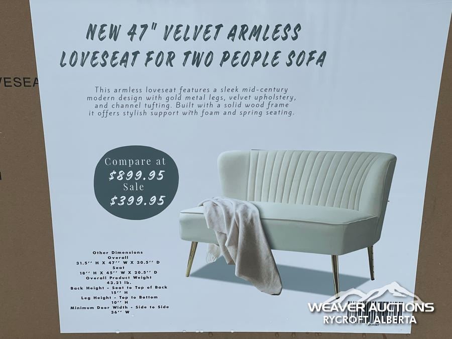 Lot 945 47 IN. ARMLESS VELVET LOVESEAT SOFA