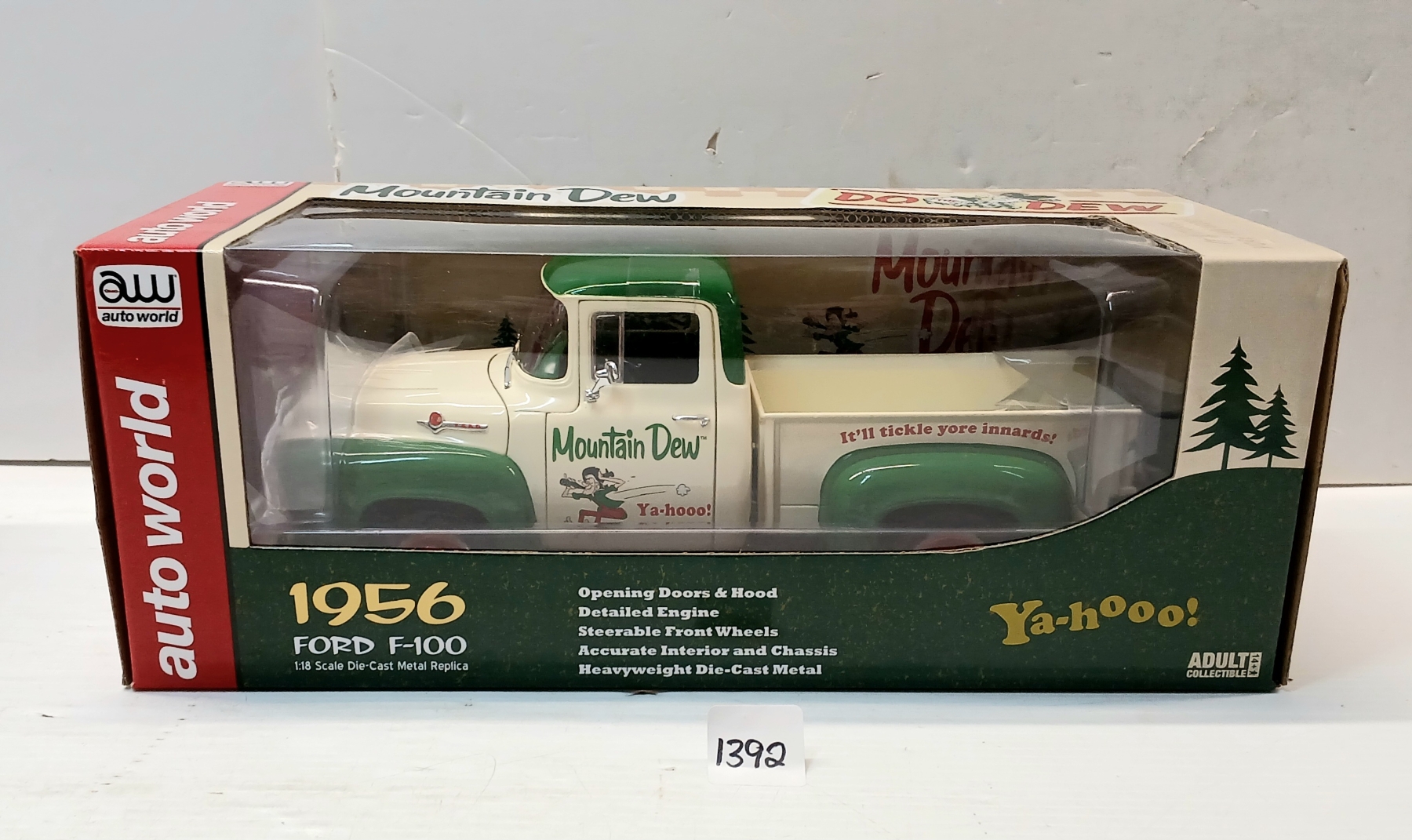 Lot 1392 AUTO WORLD DIECAST 1956 MOUNTAIN DEW FORD F-100 - SEALED