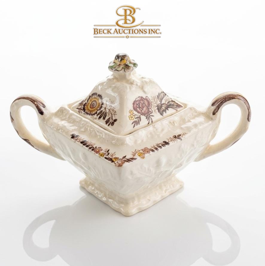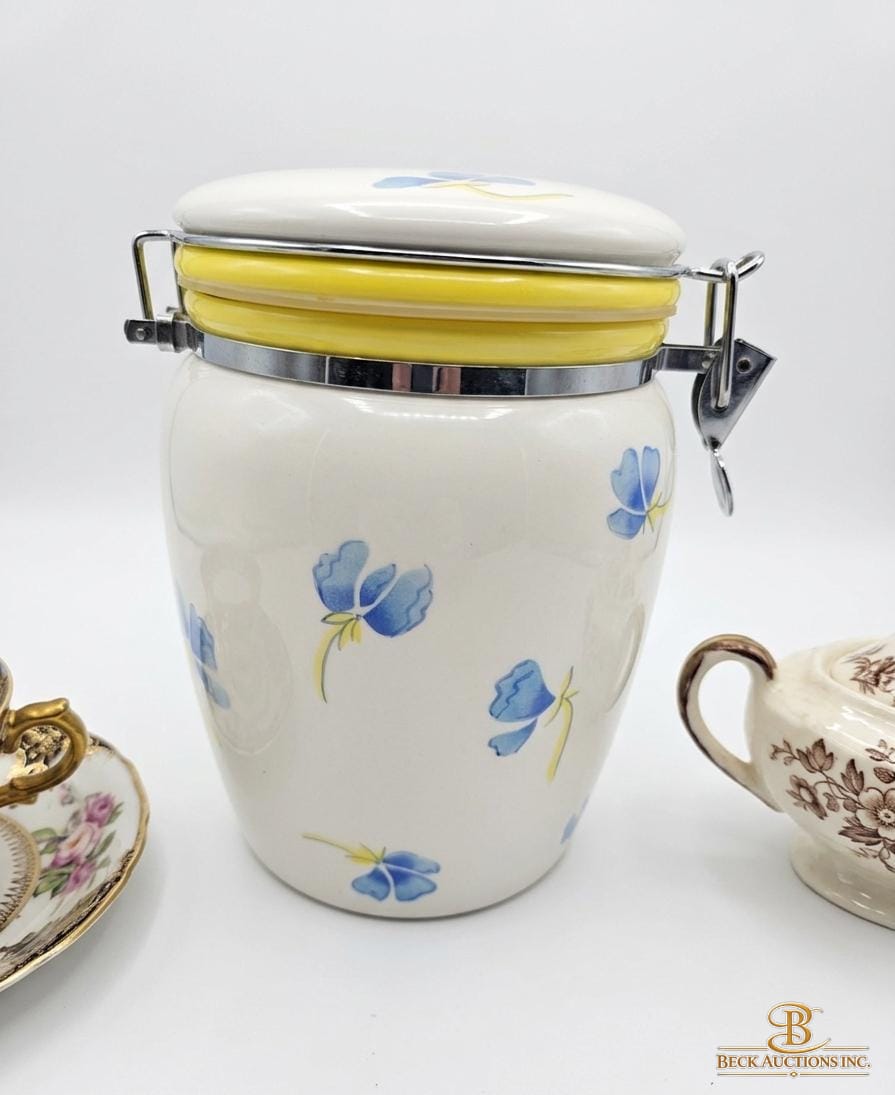Vintage Inspirado Stonelite Seattle USA Canister Cookie Jar, Vintage Covered Sugar Bowl By Mason's Patent Paragon Teacup And Saucer
