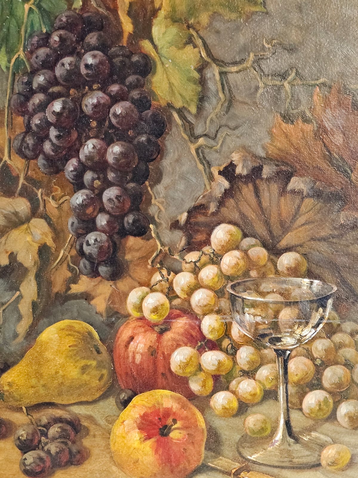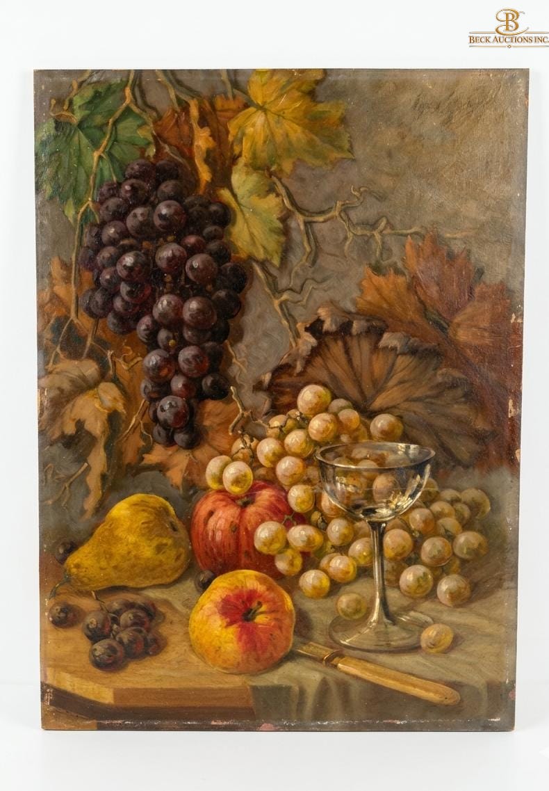 Lot 67 "Egon Stoitzner Wien" Oil Painting A Classical Arrangement Of Grapes, Pears,& Apples Beside A Glass