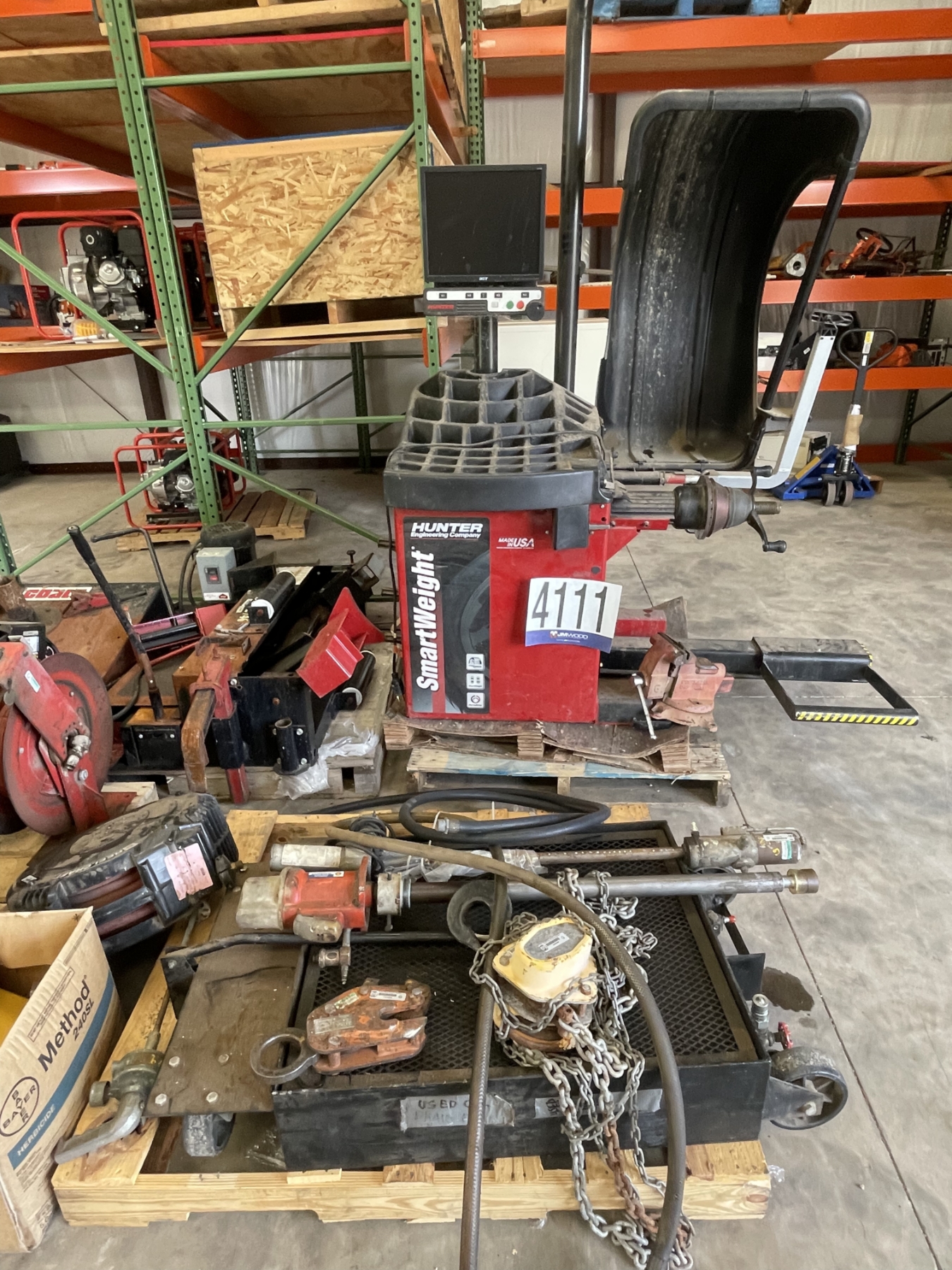 wheel balance machine, grease gun, hose reels, lifting clamp, chain hoist, oil pumps, transfer pumps, Selling Offsite: Located in Alexander City, AL
