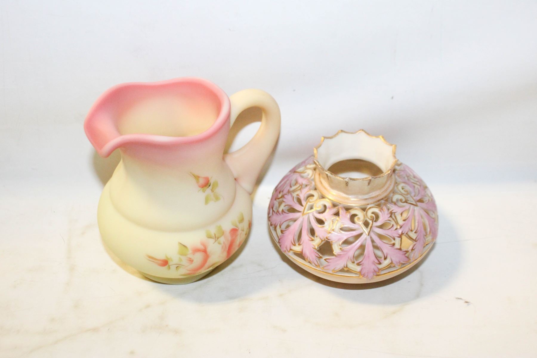 Lot 3295 ANTIQUE CUSTARD GLASS PITCHER - HAND PAINTED WITH