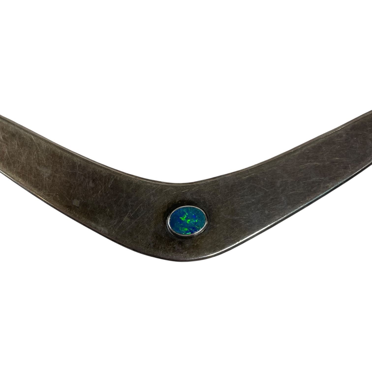 Lot 223k Prouds Sterling Silver 5" Boomerang with Blue Fire Opal Gemstone (Total weight: 20 grams)