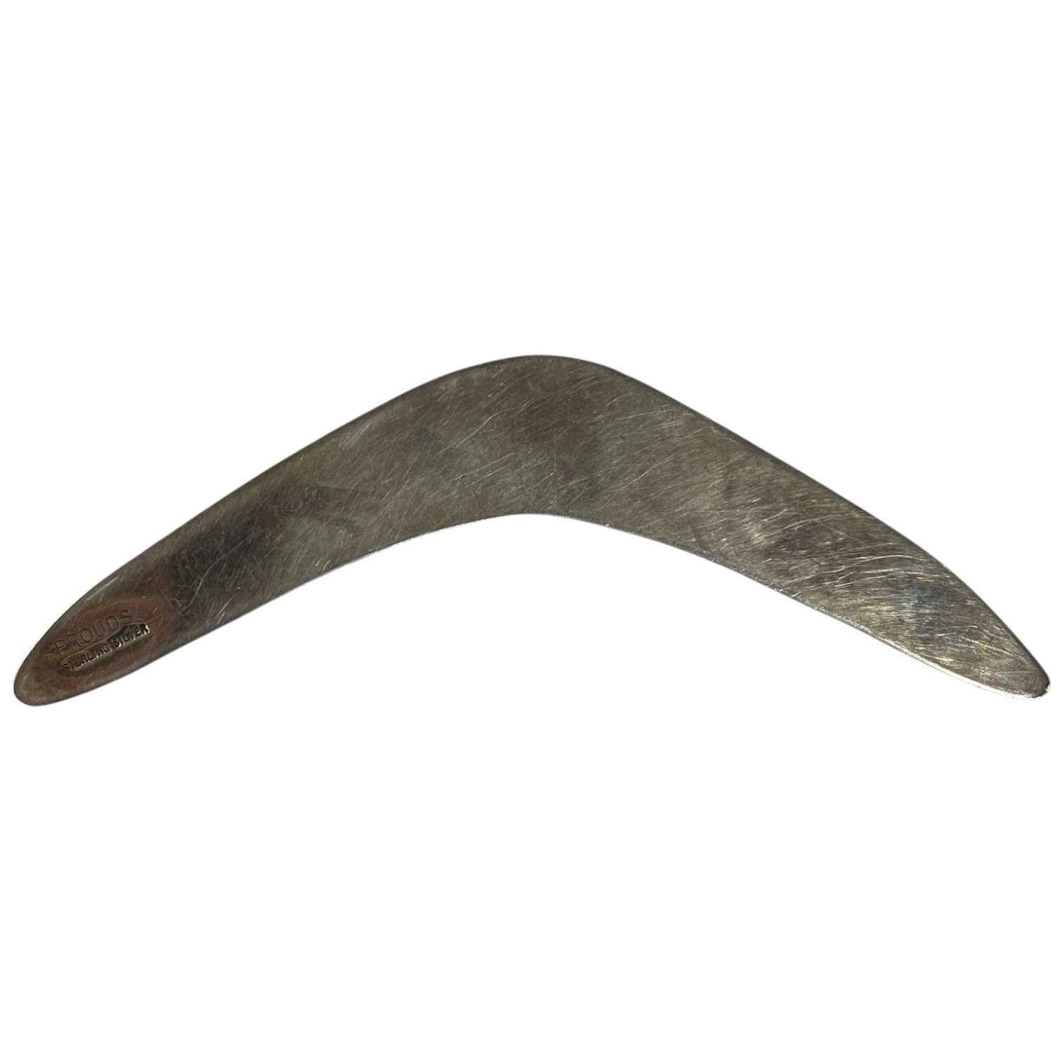 Prouds Sterling Silver 5" Boomerang with Blue Fire Opal Gemstone (Total weight: 20 grams)