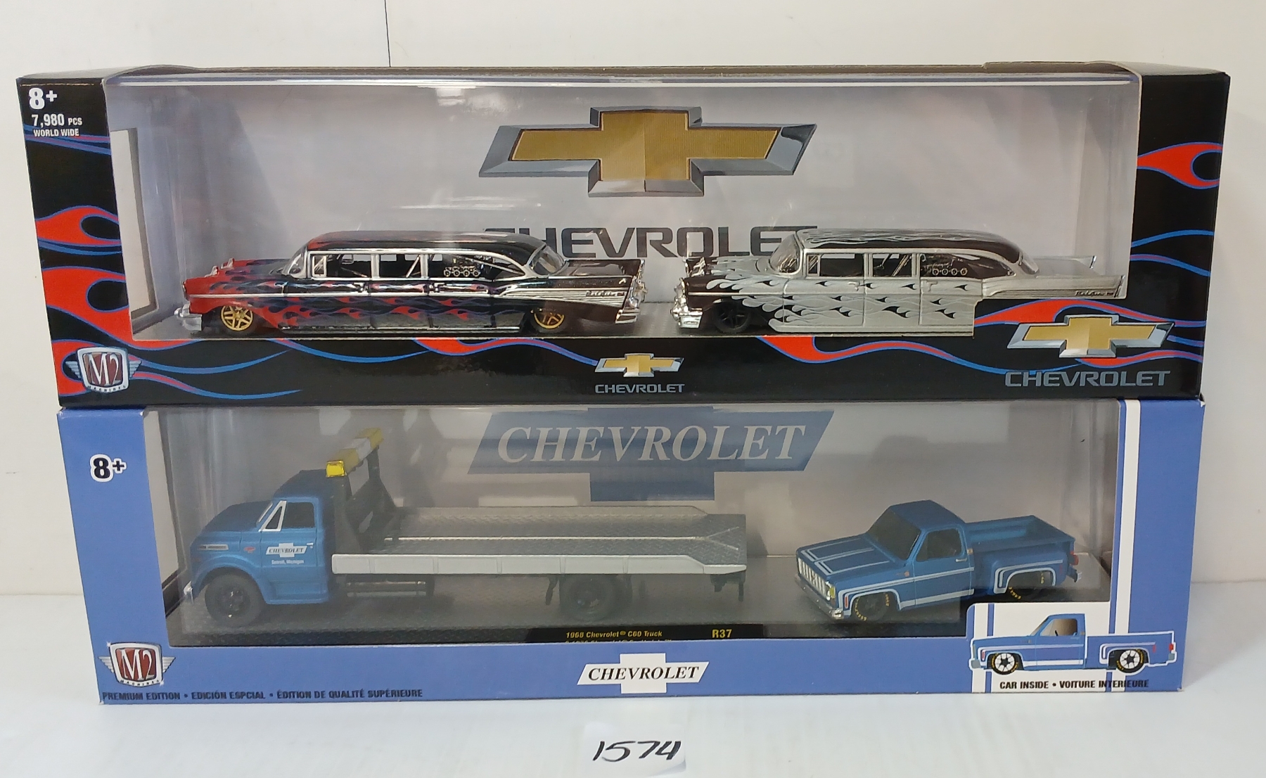 Lot 1574 LOT OF 2 - M2 CHEVY 1957 BEL AIR CUSTOM, 1968 C60 TRUCK & 1976 SCOTTSDALE DIECAST MODEL SETS